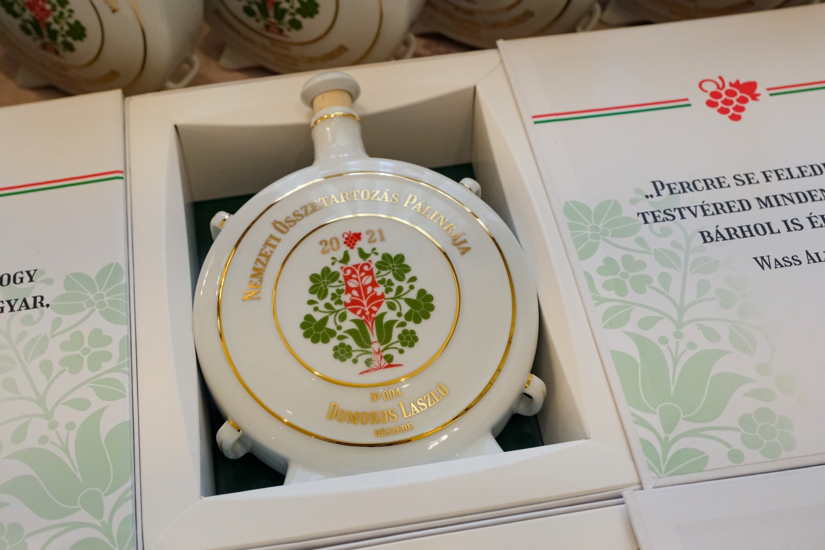 Az ital idén a Hollóházi Porcelán egyedi sorszámmal ellátott, névre szóló butéliáiba került.