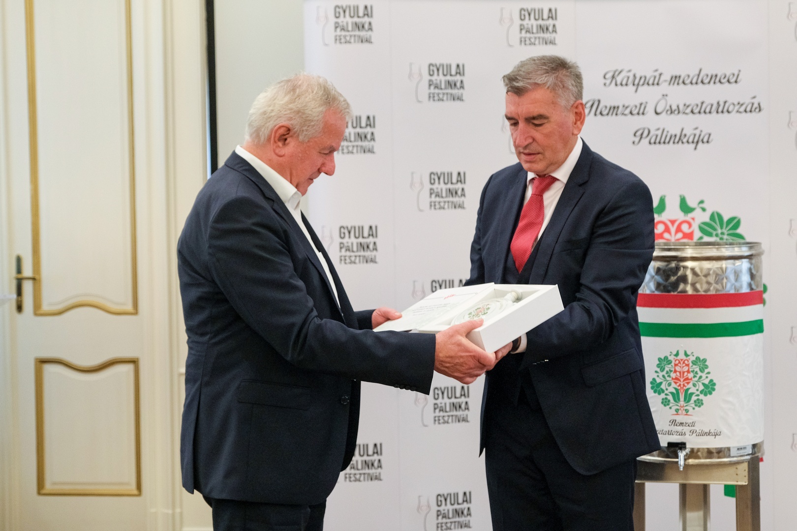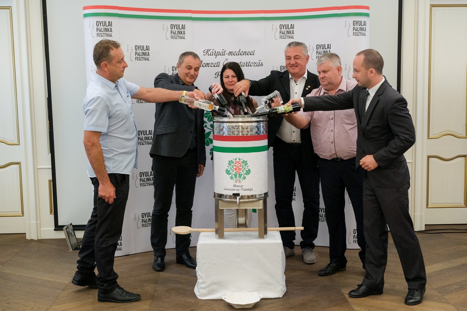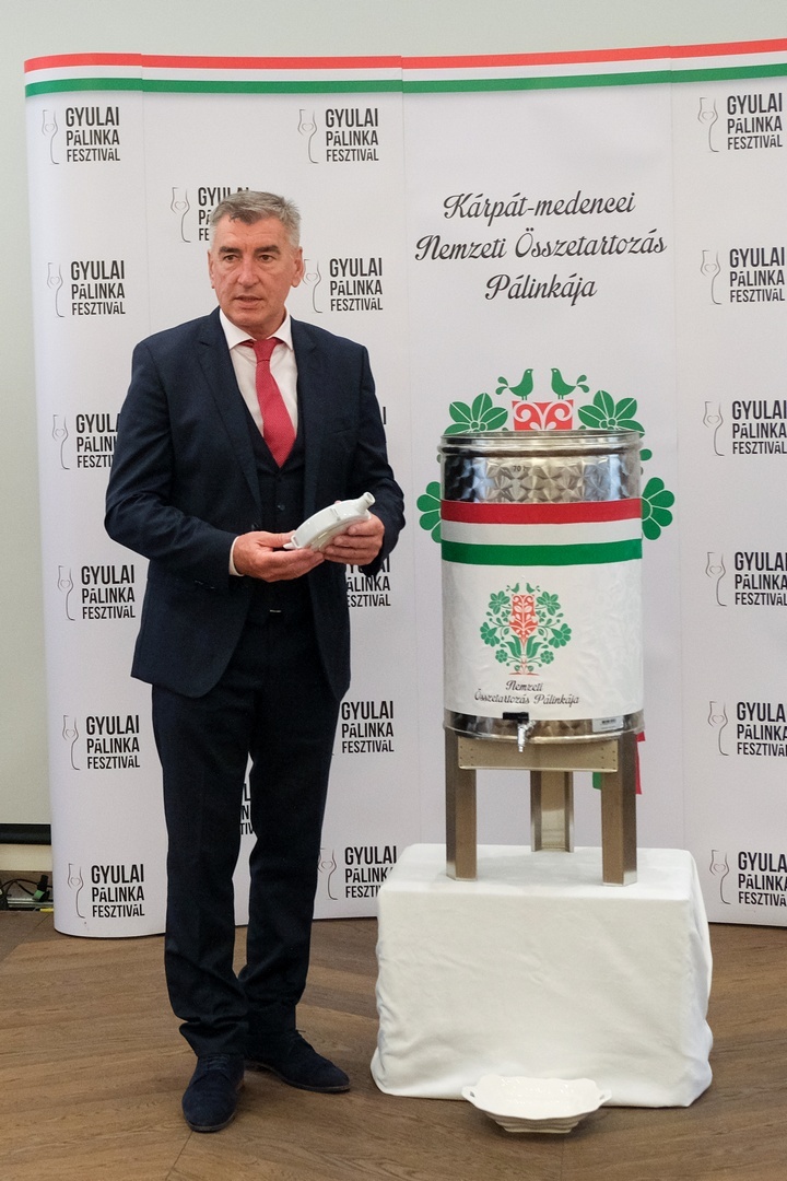 Elkészült a nemzeti összetartozás pálinkája szeptember 18-án a Gyulai Pálinkafesztivál keretében az Almásy-kastély Stefánia-szárnyában.
