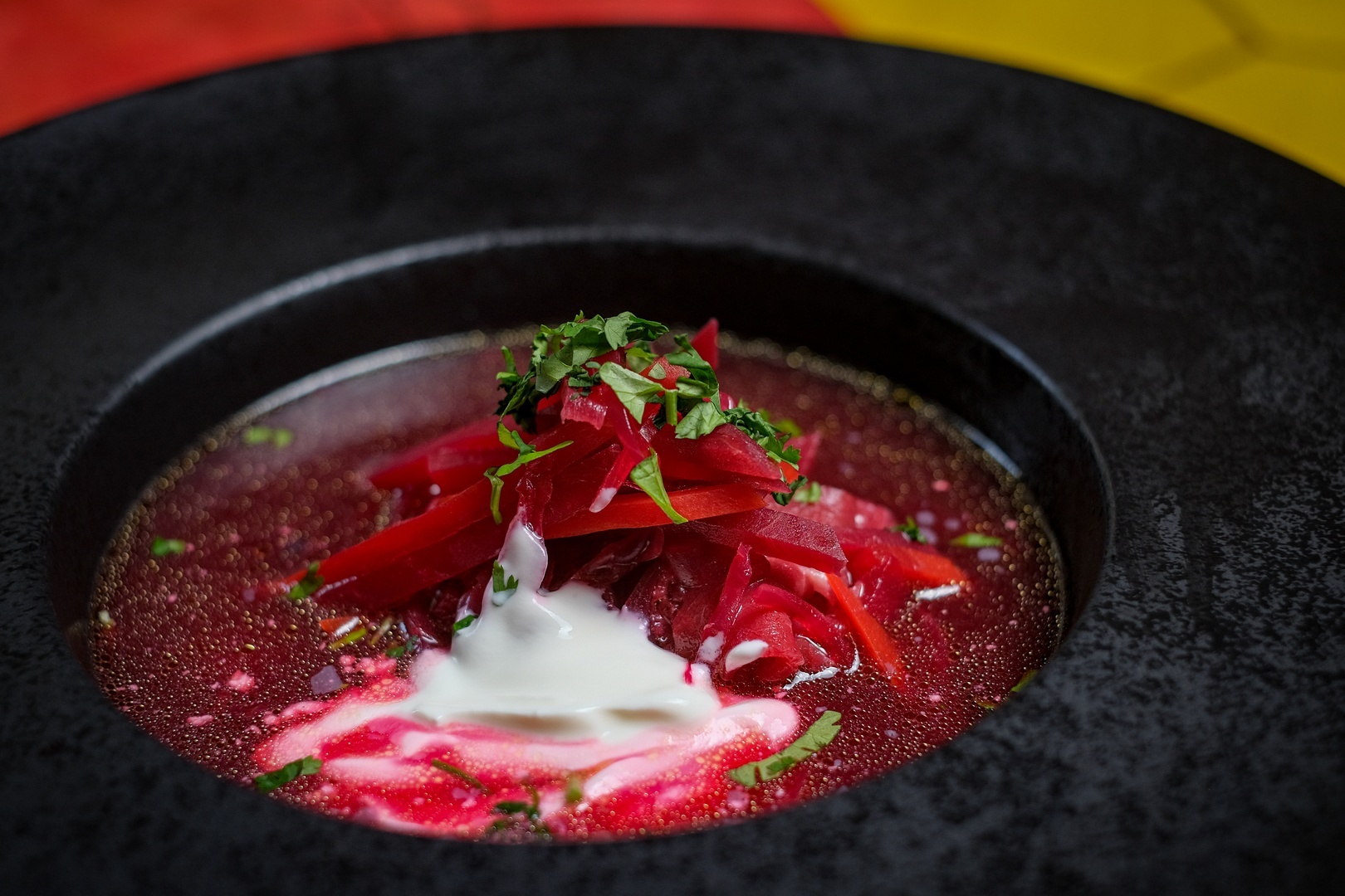 A héten következő ételek szerepelnek a Gyula Rouge ebédajánlatában: 1. céklaconsume bélszíncarpaccióval, tejföllel, 2. nyár végi zöldségleves gyöngyárpával, konfitált zsályás sárgarépával; 1. Sztroganov-sertésszűz petrezselymes jázminrizzsel, 2. pulykamell szalonnával, zöldségekkel, mentás quinoával, tzatzikival, 3. füstölt halpogácsa zöldsalátával, tormahabbal, 4. cukkinitempura édesburgonyával, fokhagymás céklakrémmel; 1. nutellás tekercs nutellaporral, mogyoróval, 2. angol banános pite karamellel, tejszínhabbal.