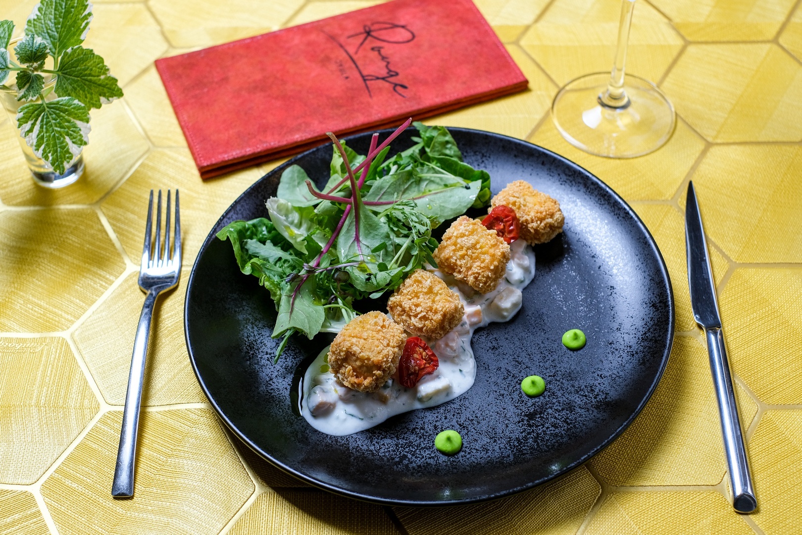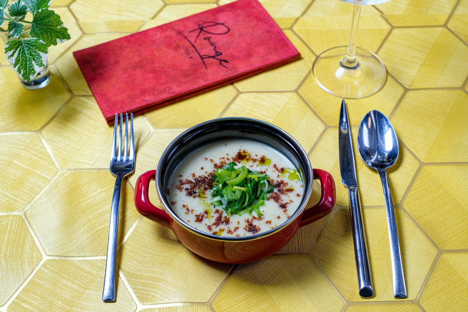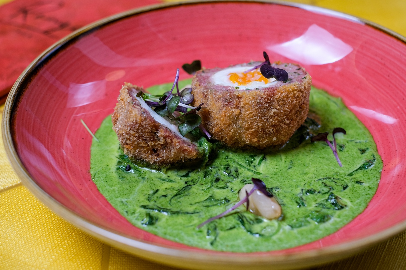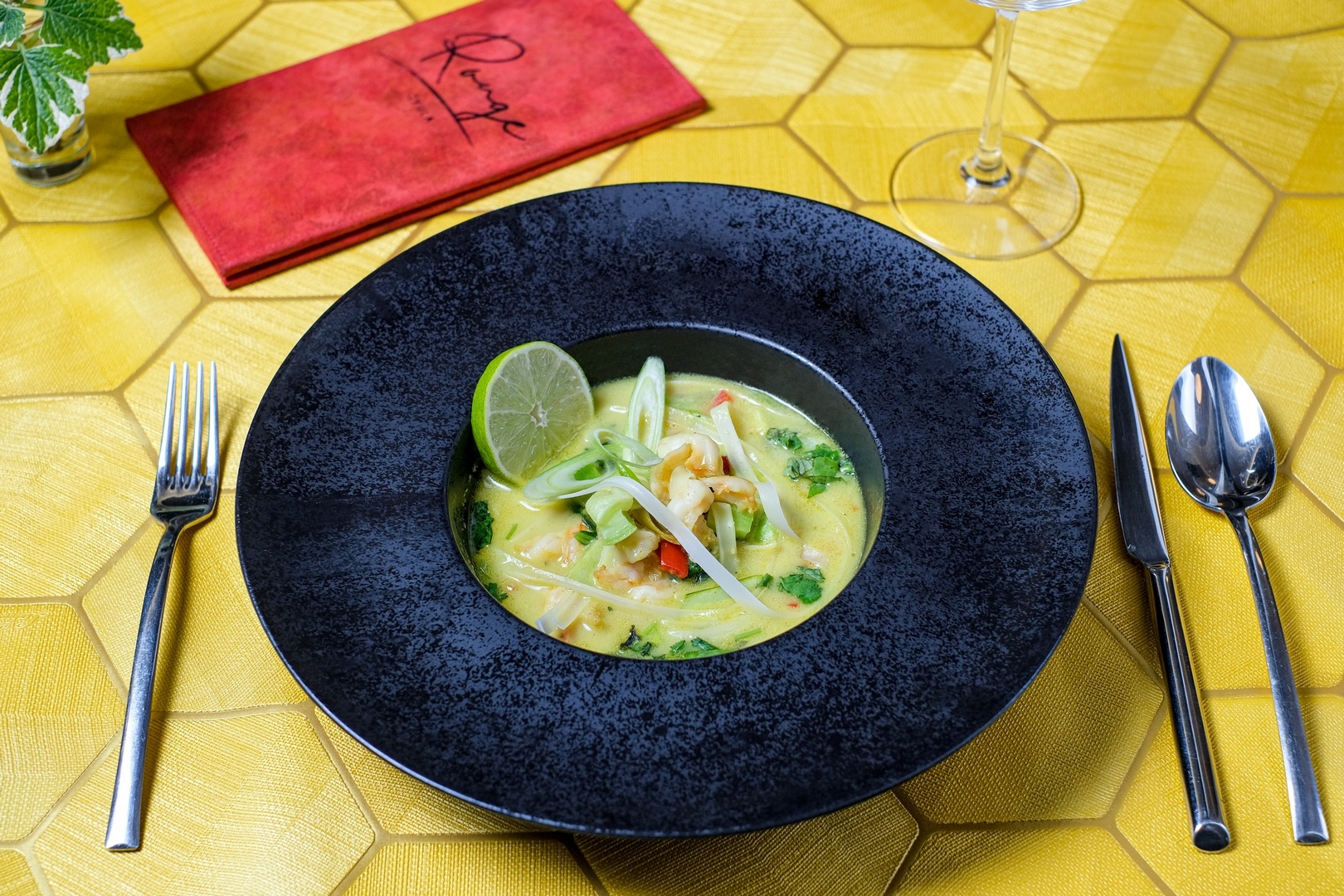 A héten következő ételek szerepelnek a Gyula Rouge ebédajánlatában: póréhagyma-burgonya krémleves (kolbászmorzsa), sárga curryleves (garnéla, üvegtészta), skót tojás (tejszínes spenótfőzelék), csirkemell (méz, gyömbér, zöldség, okra, sült rizs), lazacpisztráng (citrom, burgonyahab, zöldek), rántott zeller (kukorica bunda, sajt salsa, friss saláta), morzsás almás (vanília fagylalt), panna cotta (málna, málnavelő).