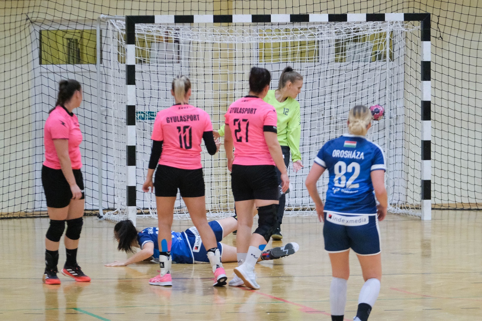 A hazai gárda mindent meg is tett azért, hogy kiszolgálja közönségét. Zöldi-Tóth Katalin alakulata kőkemény védekezésével rendre megzavarta az orosházi együttest, villámgyors támadójátékával pedig már az első percektől magához ragadta a vezetést. A Szabó Kamilla fémjelezte támadósor futószalagon szállította a találatokat, amelynek köszönhetően a hazai gárda a 10. percre 6-2-re ellépett ellenfelétől. A megyei riválist azonban nem fogta meg a kiváló gyulai kezdés, remek játékkal tartotta a lépést a hazai gárdával.
