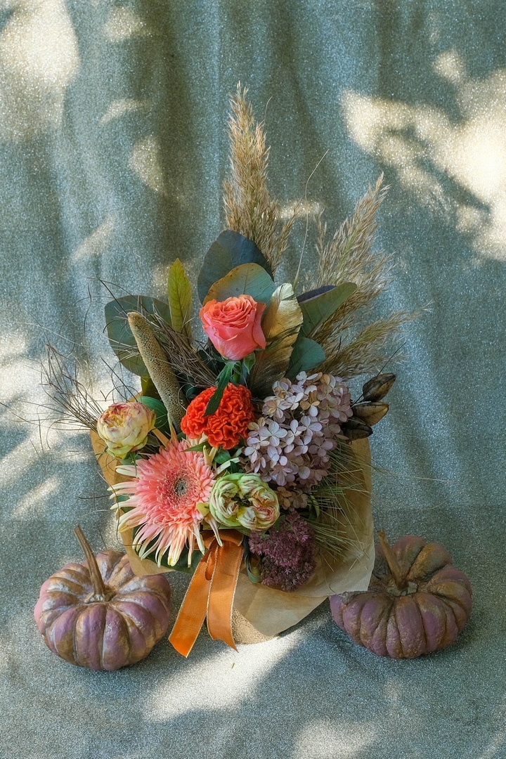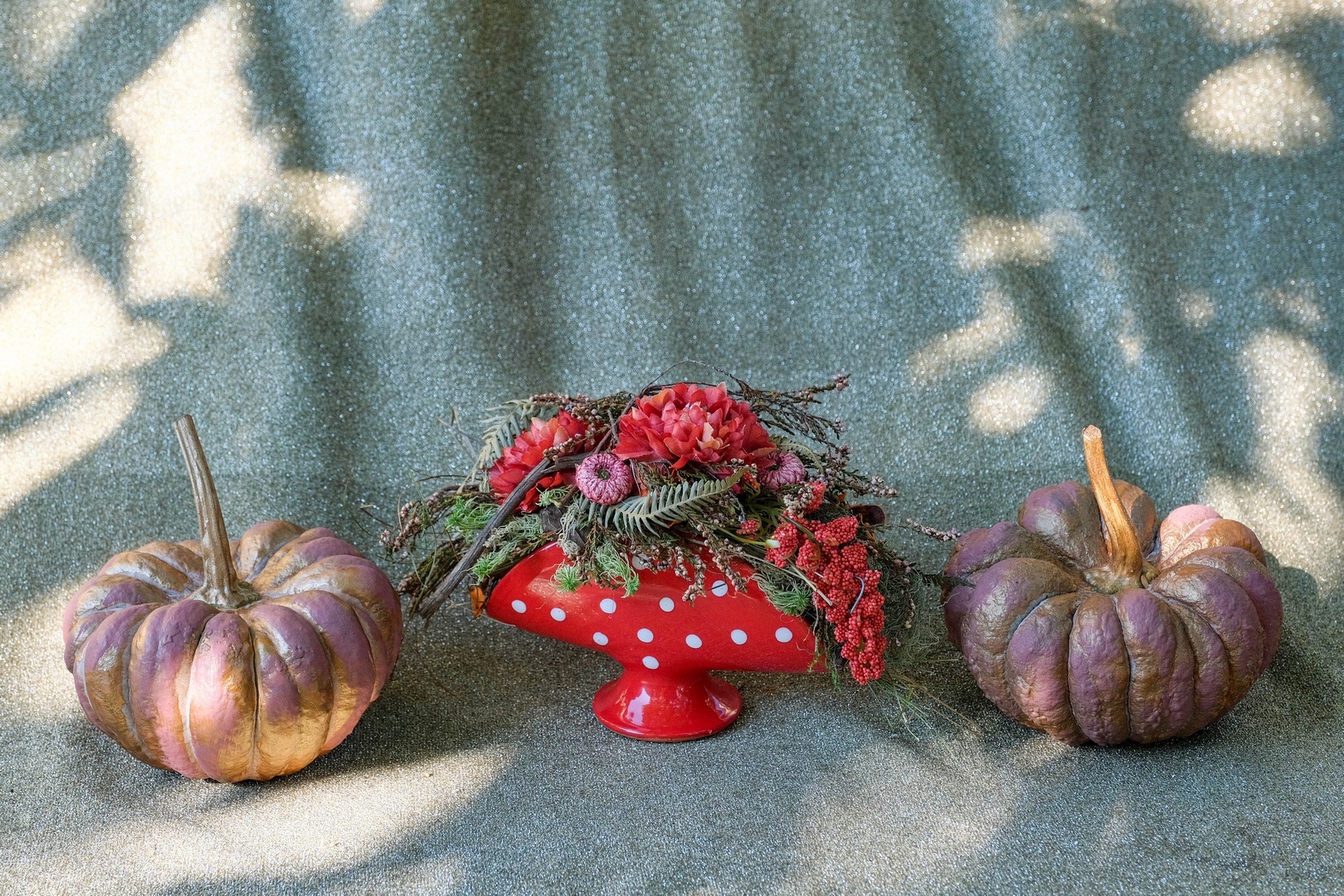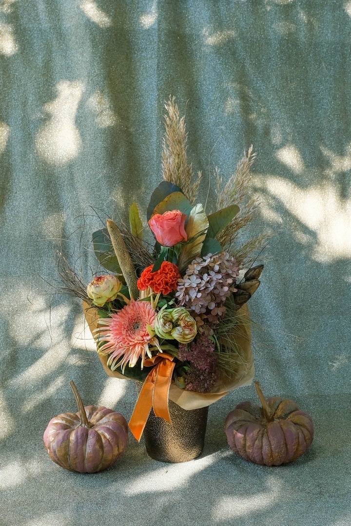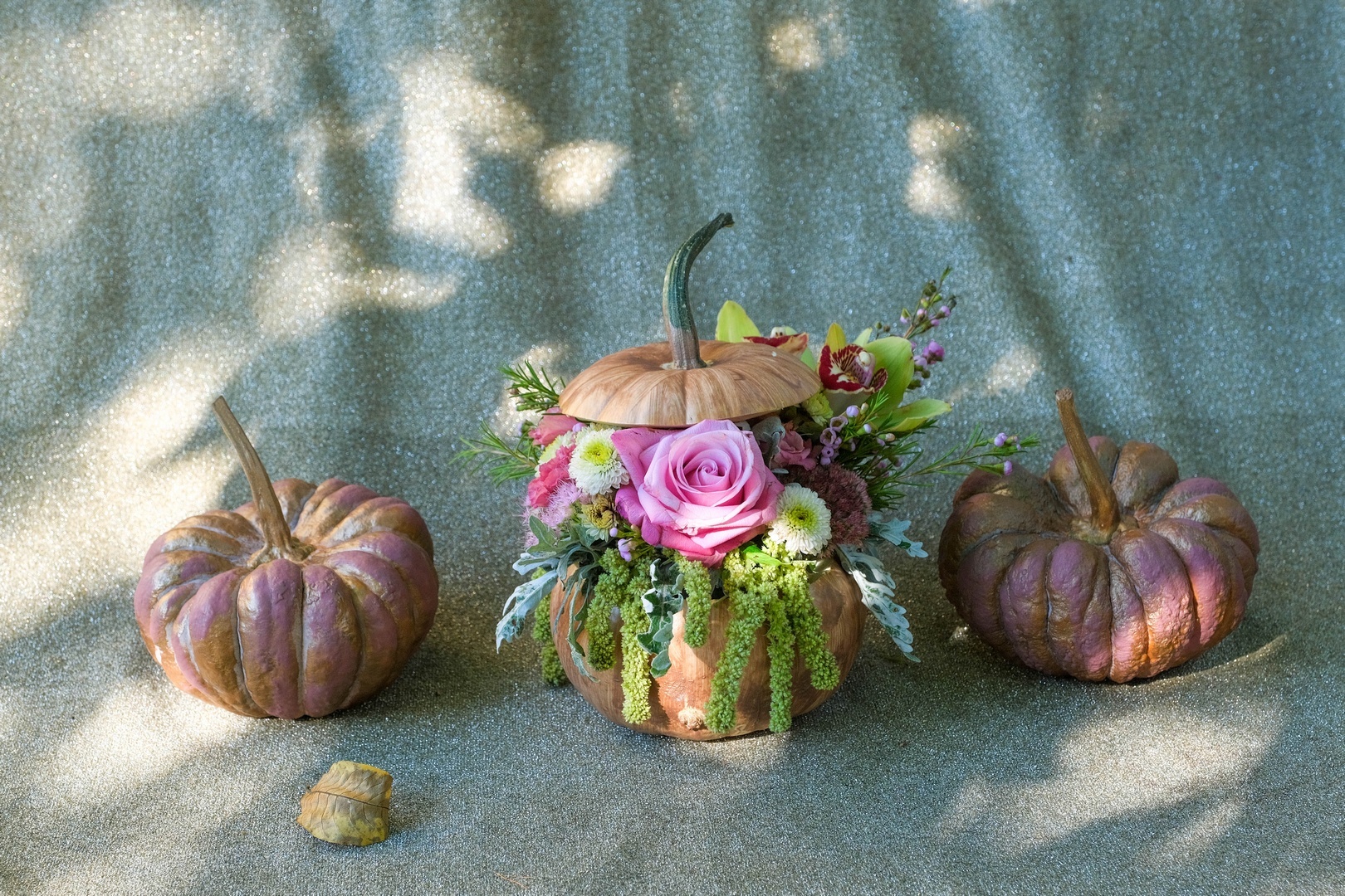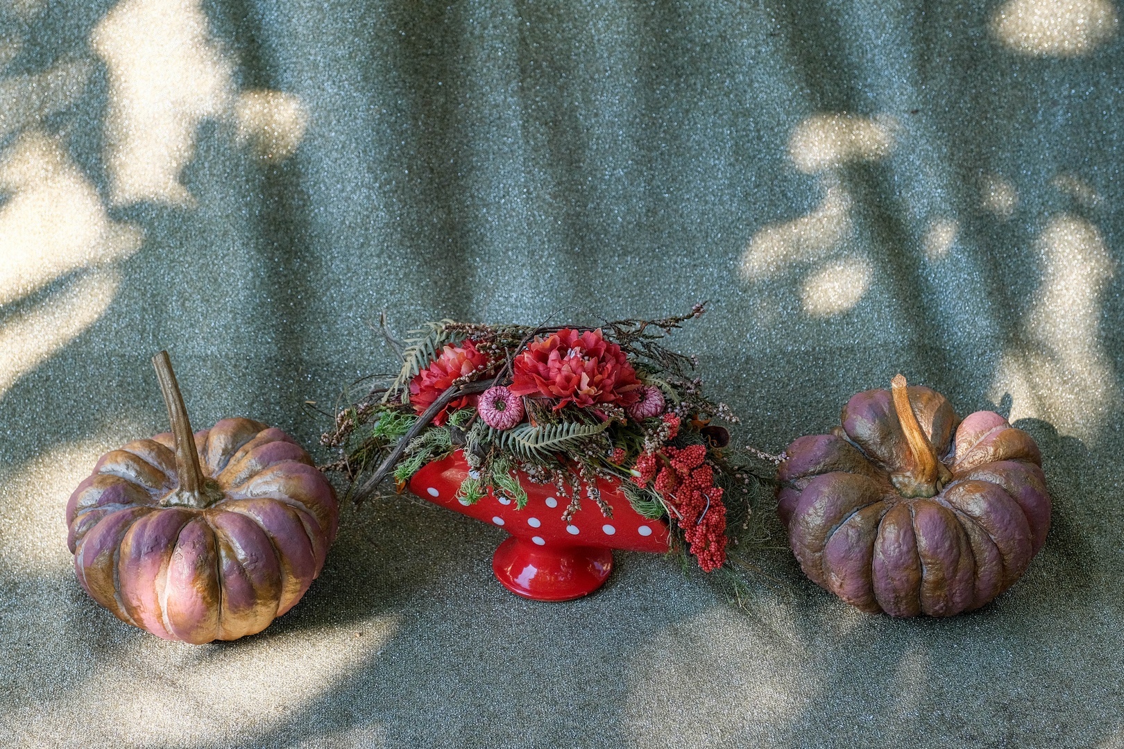 – A természetben járva gyönyörű terméseket láthatunk: csipkebogyót, berkenyét, fagyalt, vadalmát, vadkörtét. Ezek ihlették a díszeinket – fejtette ki. Hozzátette: klasszikus és modern virágkompozíciók is kaphatók a boltban, például rose goldra festett tök élő virággal, lila flamingóval és wanda orchideákkal.