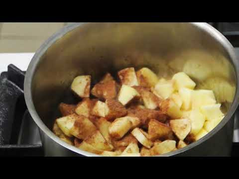 Meghámozzuk az almákat, felkockázzuk, főzőedényben a cukorral, fahéjjal, szerecsendióval,sóval összefőzzük, körülbelül 6-8 perc alatt. A lisztet, vajat egy keverőtálban az ujjaink segítségével szétdolgozzuk addig, amíg egy morzsaszerű állagot kapunk, ne legyenek benne vajdarabok. Ezután óvatosan belekeverjük a barna cukrot. A főtt alma kompótot sütőedénybe tesszük, rárakjuk a morzsát, 170°C fokos sütőben aranybarnára sütjük. Vanília fagylalttal tálaljuk.
