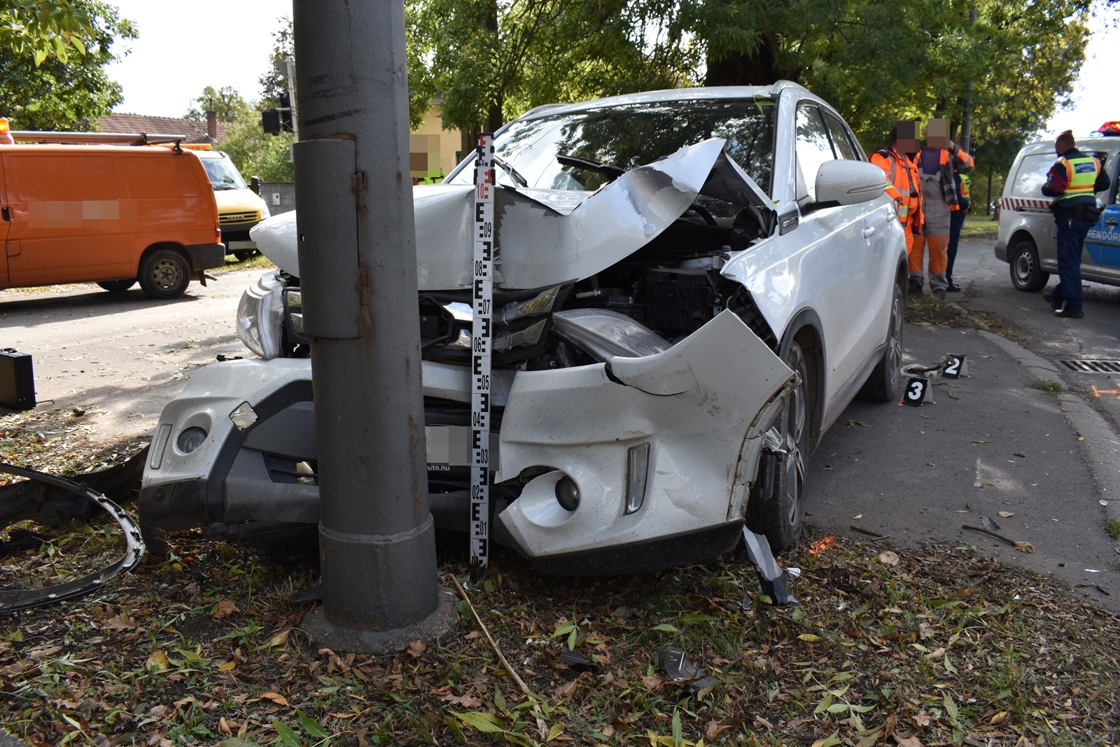Egy személygépkocsi vezetője lement az útról és egy villanyoszlopnak ütközött Békéscsabán, a Bartók Béla út és a Tulipán utca kereszteződésében. A mentők a jármű utasát könnyű sérüléssel vitték kórházba.