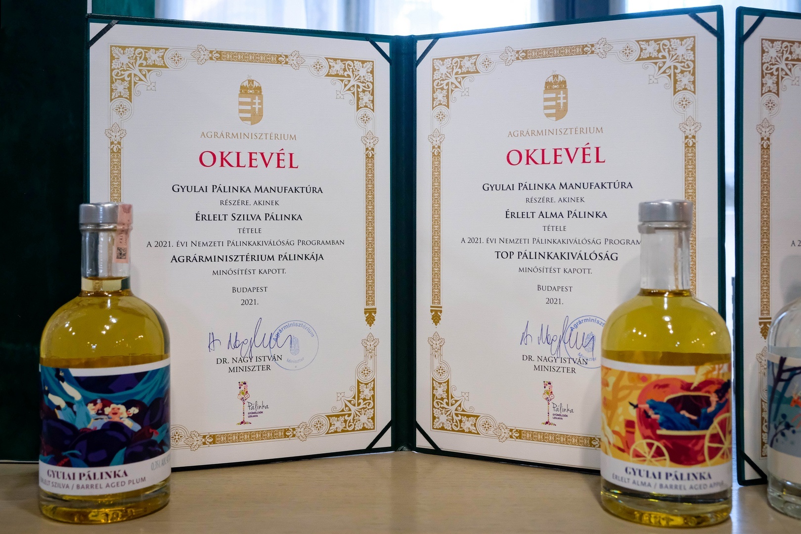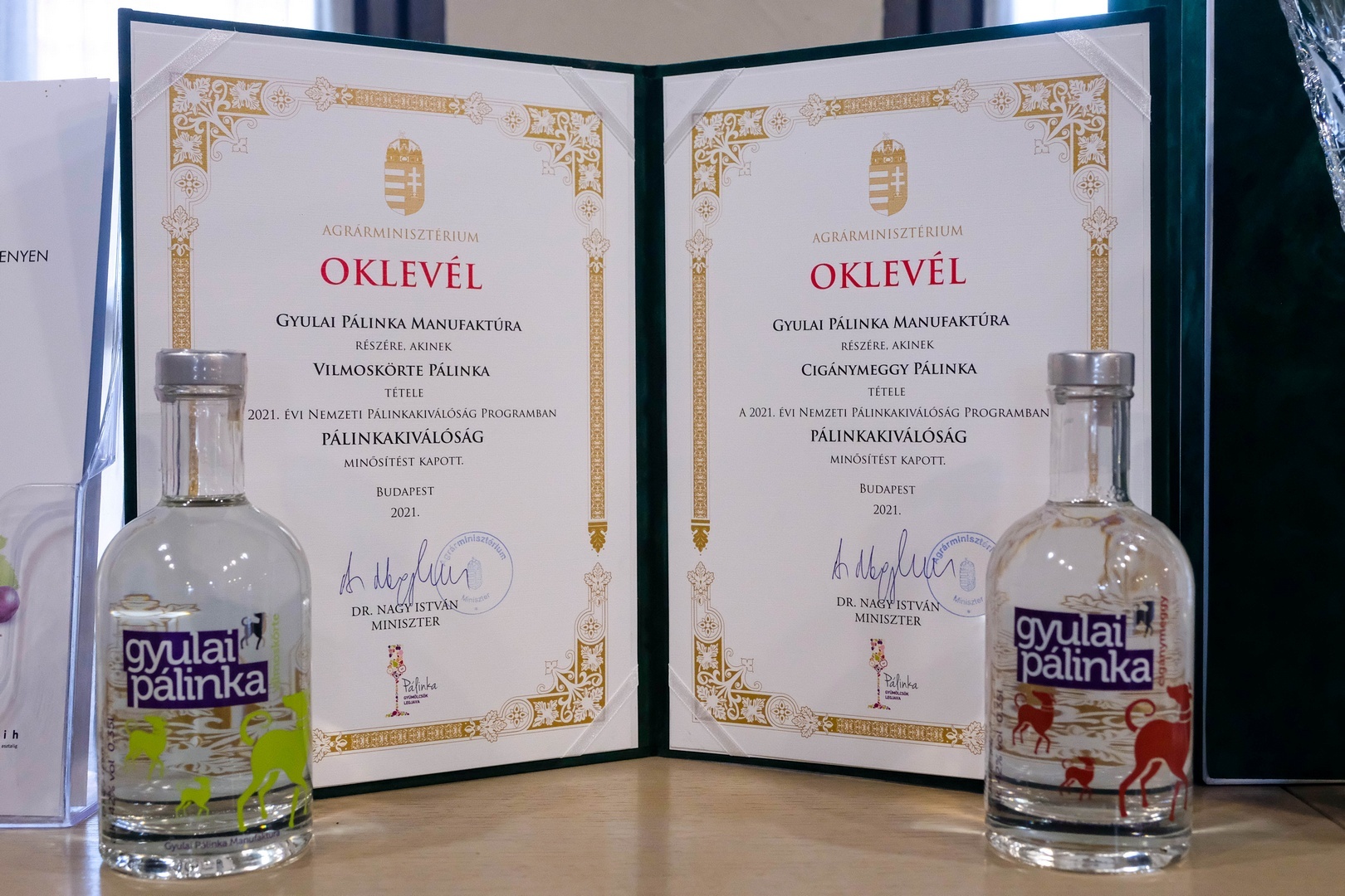 A Gyulai Pálinka Manufaktúra Kft. besztercei szilvából készült érlelt szilvapálinkája nyerte el az Agrárminisztérium pálinkája címet 2021-ben, a Nemzeti Pálinkakiválóság Programon.