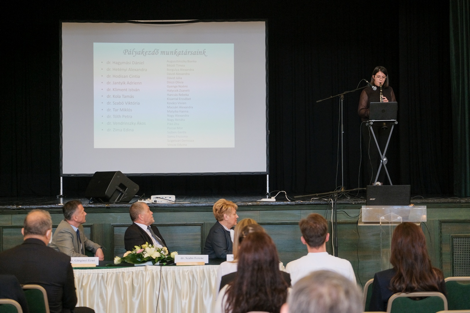 A folytatásban Kuti Janka zenélt klarinéton a megjelenteknek, esküt tettek a pályakezdők, majd köszöntötték az orvosokat, akik szakvizsgát tettek a közelmúltban. Gratuláltak továbbá Abdulrahman Abdulrab Mohamed főorvosnak, aki Békés megyéért kitüntetésben részesült nemrég, valamint Novák János osztályvezető főorvosnak, aki Friedrich László-emlékérmet kapott.