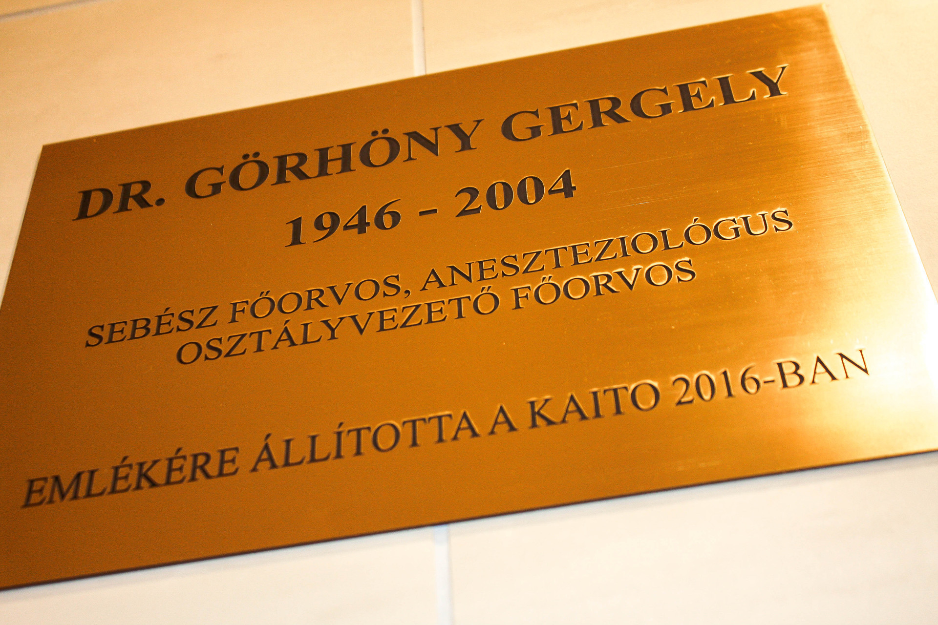 5 évvel ezelőtt, 2016. október 22-én ünnepséget rendeztek a gyulai tagkórház kórház Árvay termében a központi aneszteziológiai és intenzív terápiás osztályának megalakulására emlékezve. A rendezvényre meghívták azokat az dolgozókat, akik az eseményt megelőző 30 év alatt huzamosabb ideig ezen az osztályon dolgoztak. Csaknem 130-an vettek részt az ünnepségen, amelyen az évforduló kapcsán emléktáblát avattak fel dr. Görhöny Gergely tiszteletére.