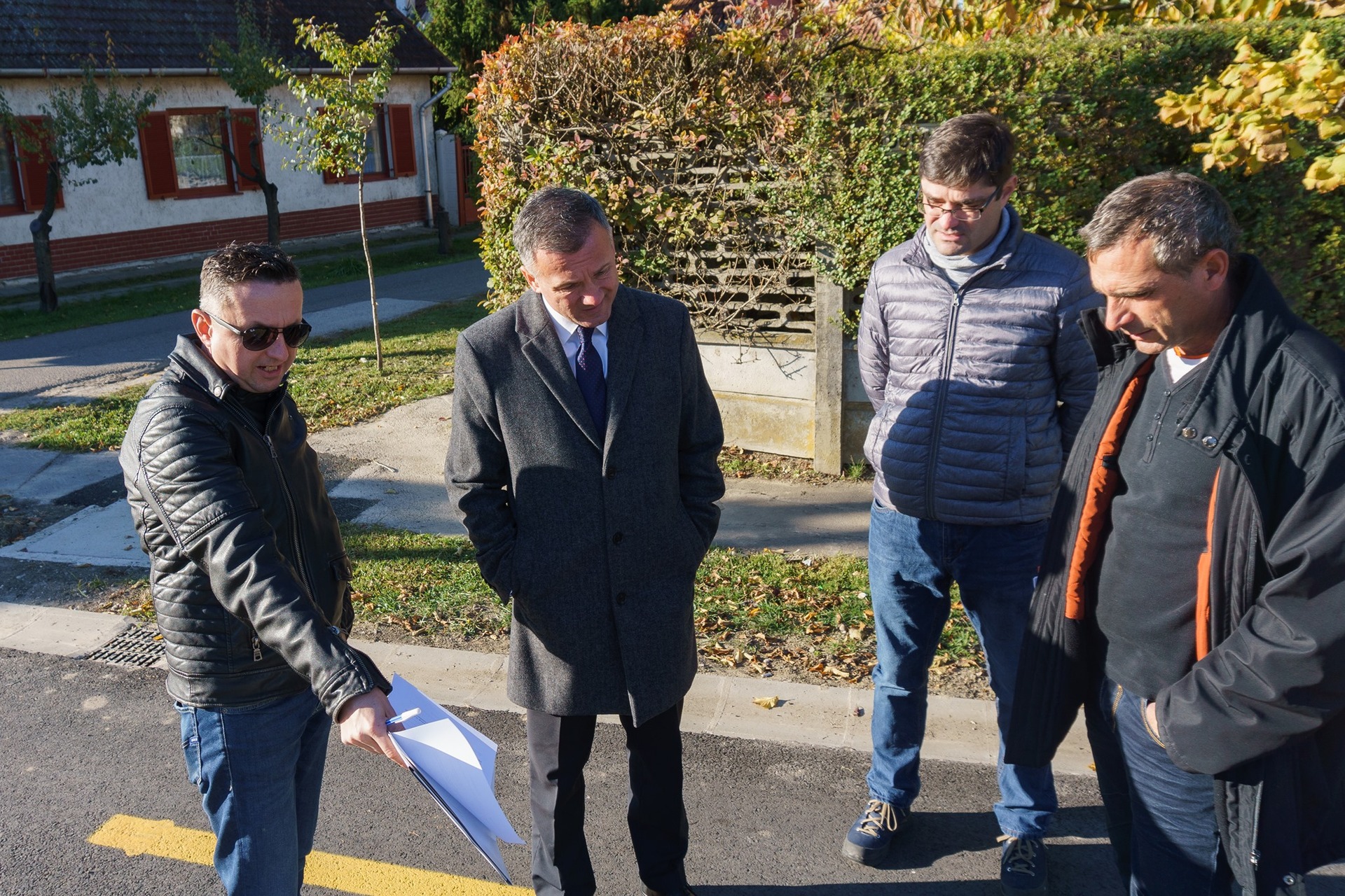 Október 25-én Puskás Bélával, a kivitelező Aszfalt-Közmű Kft. ügyvezetőjével, Alt Norbert alpolgármesterrel, a körzet önkormányzati képviselőjével, valamint Molnár Csabával, a mérnöki osztály vezetőjével tartottak műszaki bejárást.