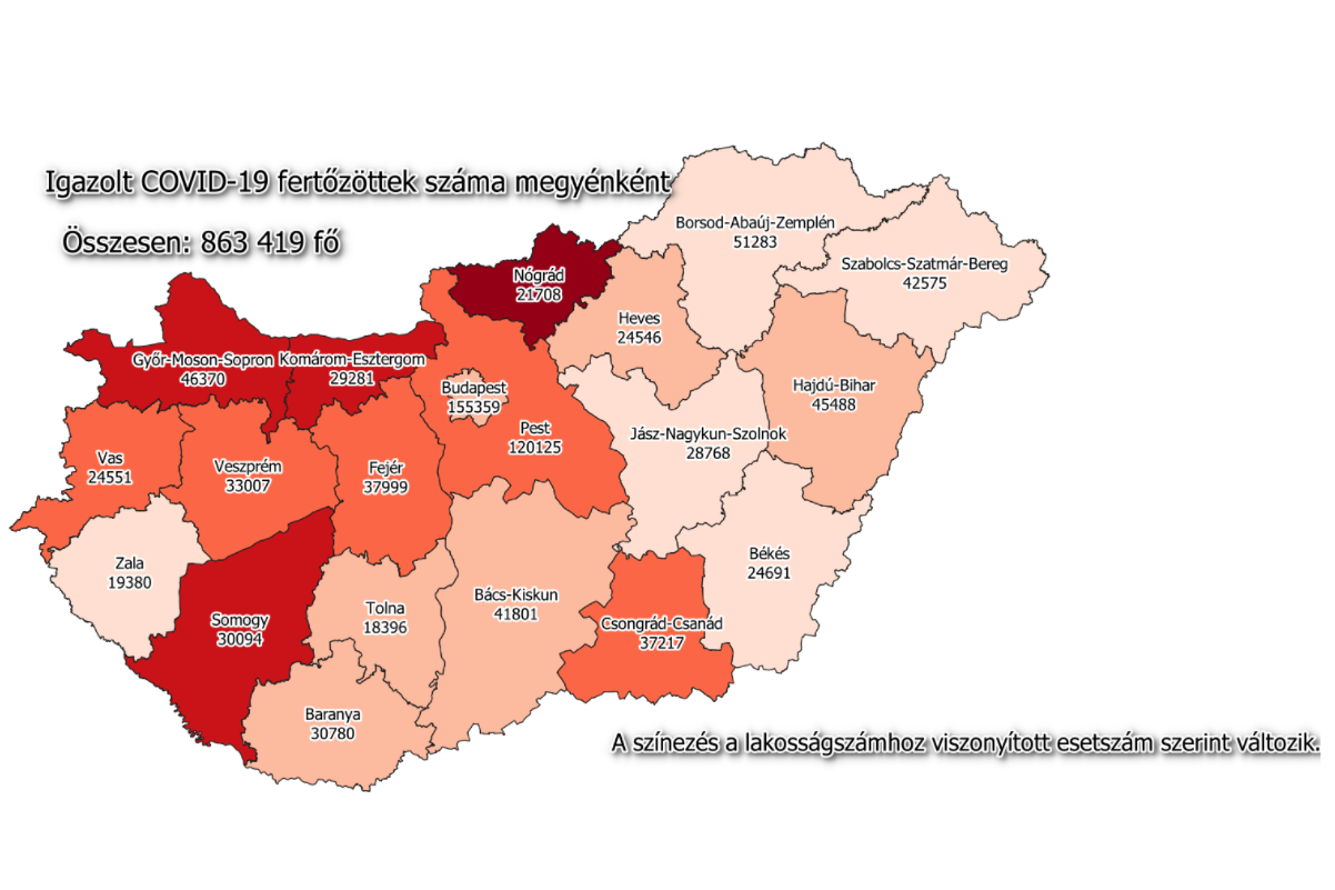 A kormányzati portálon azt írták: 863 419-re nőtt a Magyarországon azonosított fertőzöttek száma. Elhunyt 30 729 ember, a gyógyultak száma 797 910-re emelkedett. Az aktív fertőzöttek száma 34 780.