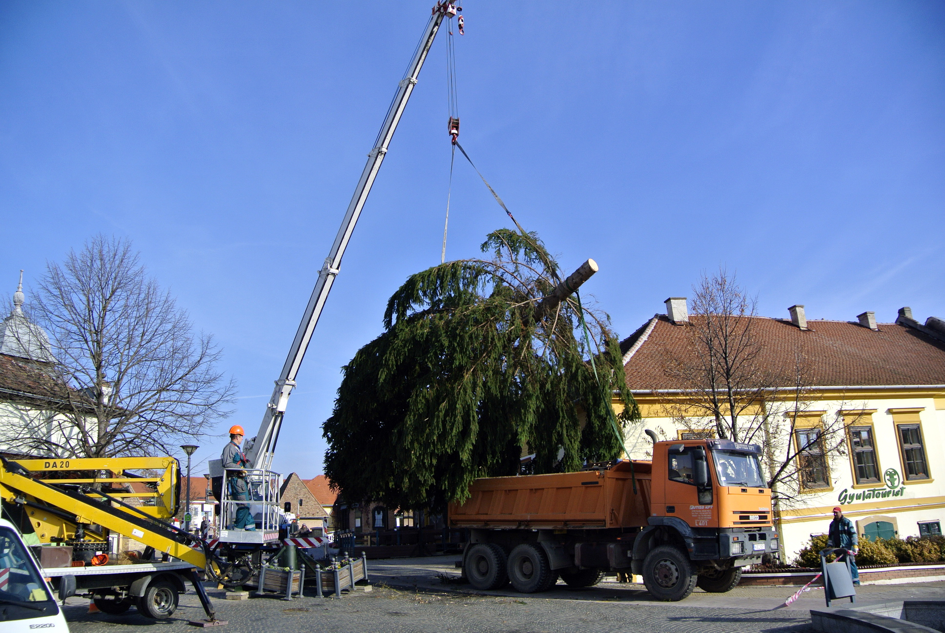 Elkezdték felállítani a városi karácsonyfákat, ha jól haladnak a munkálatok, még ma a helyére kerülhet valamennyi örökzöld – mondta el megkeresésünkre Szászné Várkonyi Adrienn, a város főkertésze.