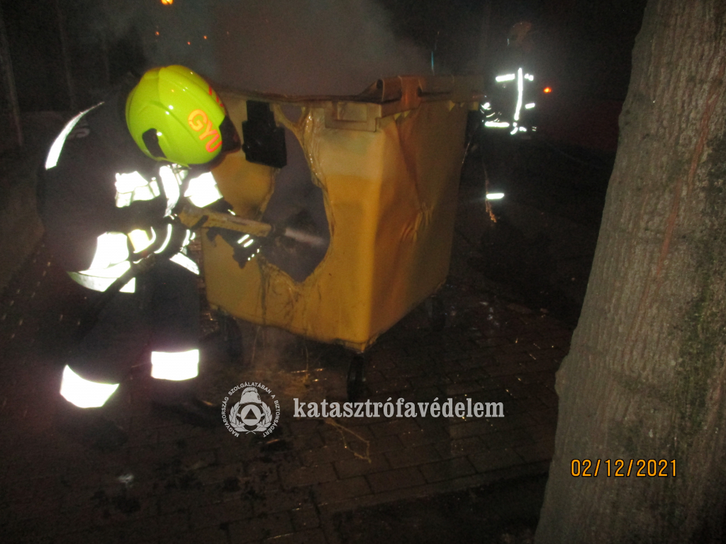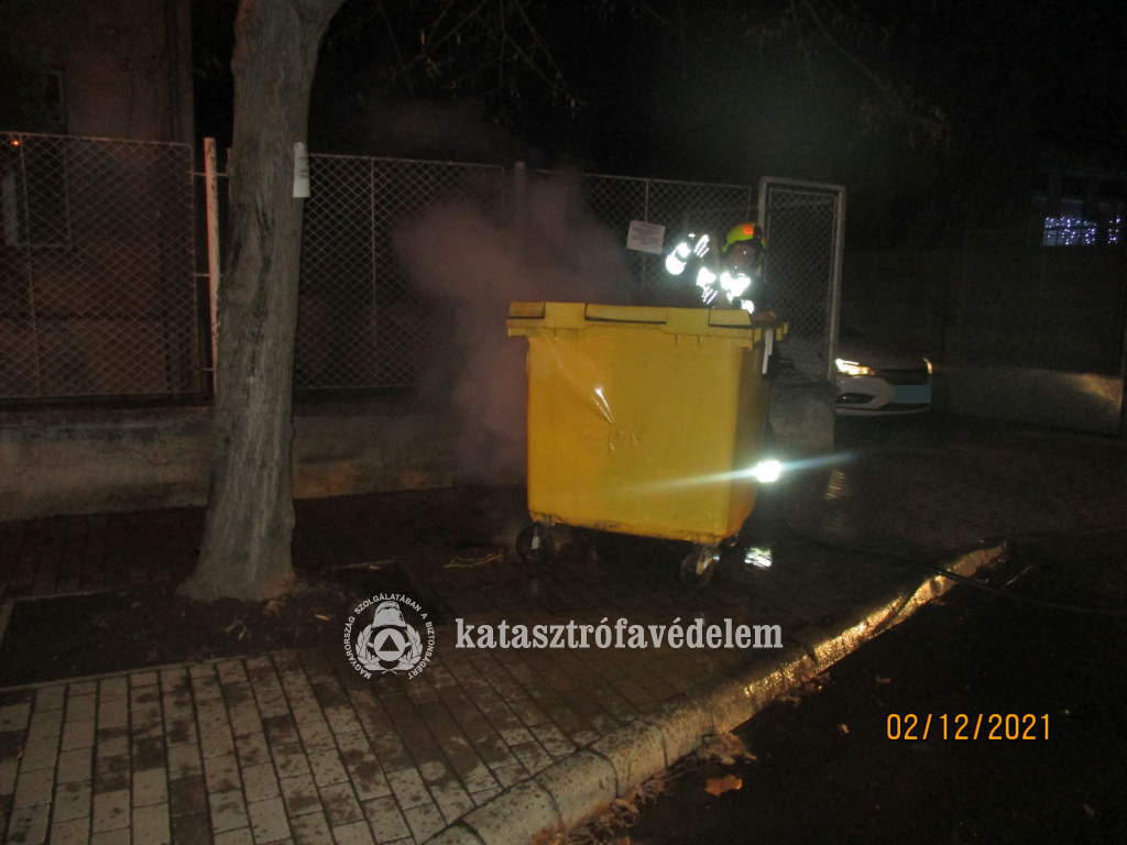 Műanyag hulladéktároló gyulladt ki december 2-án Gyulán, az Eötvös Loránd utcában – közölte a Békés Megyei Katasztrófavédelmi Igazgatóság.