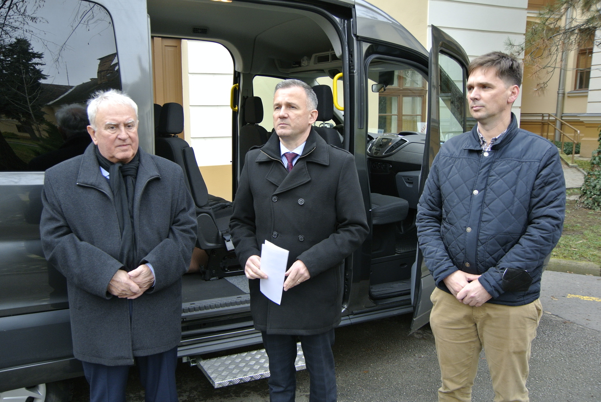 Pályázati támogatásból vásárolt kisbuszt a Gyulai Kistérség Egységes Szociális és Gyermekjóléti Intézmény – számolt be róla Kiss Szabolcs intézményvezető, Görgényi Ernő polgármester és Kovács József országgyűlési képviselő december 7-én a polgármesteri hivatal udvarán.