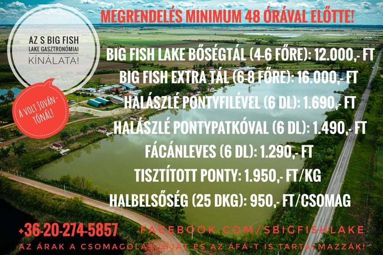 - Big Fish Extra tál (6–8 főre): 16 000 Ft