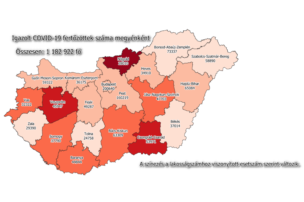 A kormányzati portálon azt írták: 1 182 922-re nőtt a Magyarországon azonosított fertőzöttek száma. Elhunyt 36 429 ember, a gyógyultak száma 968 897-re emelkedett. Az aktív fertőzöttek száma 177 596.