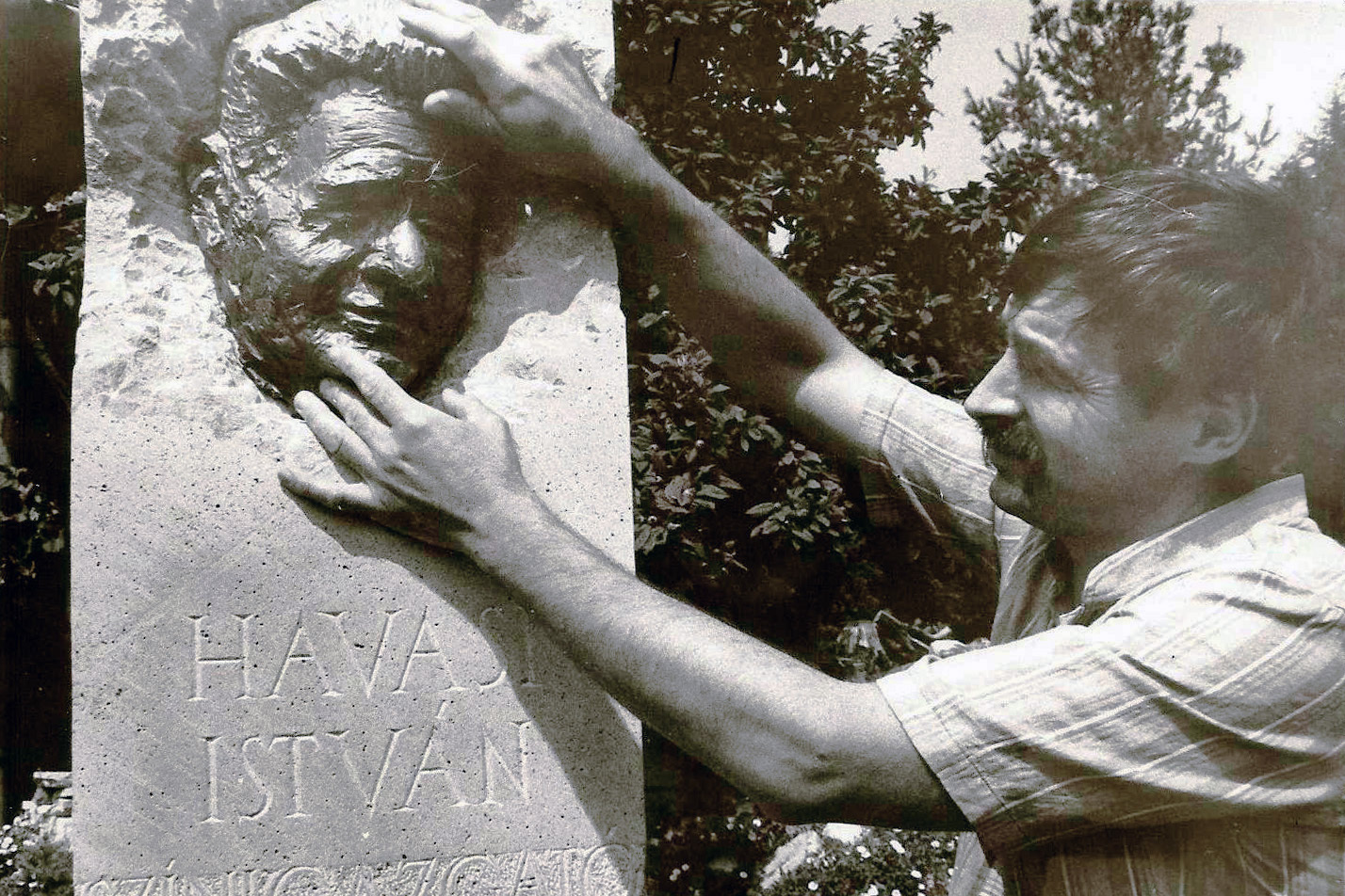 HAVASI ISTVÁN EMLÉKOSZLOPA, MELLETTE SZÉRI-VARGA GÉZA SZOBRÁSZMŰVÉSZ