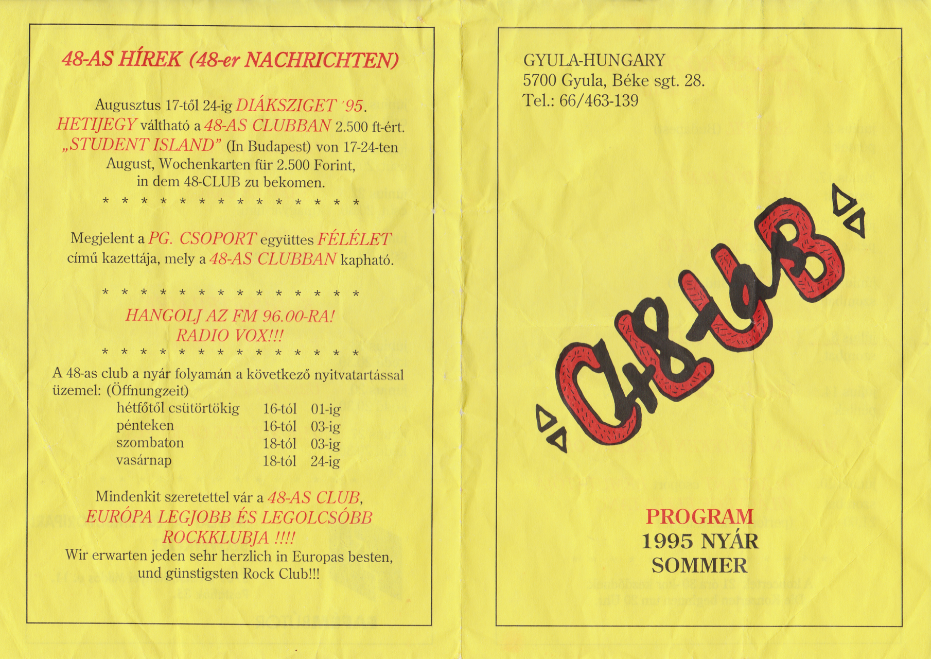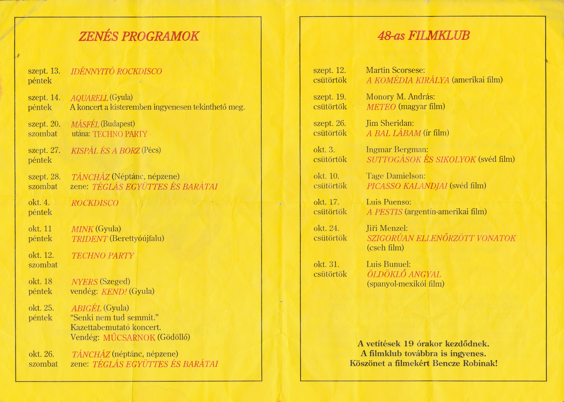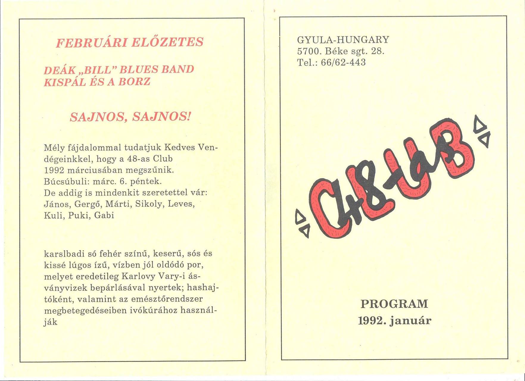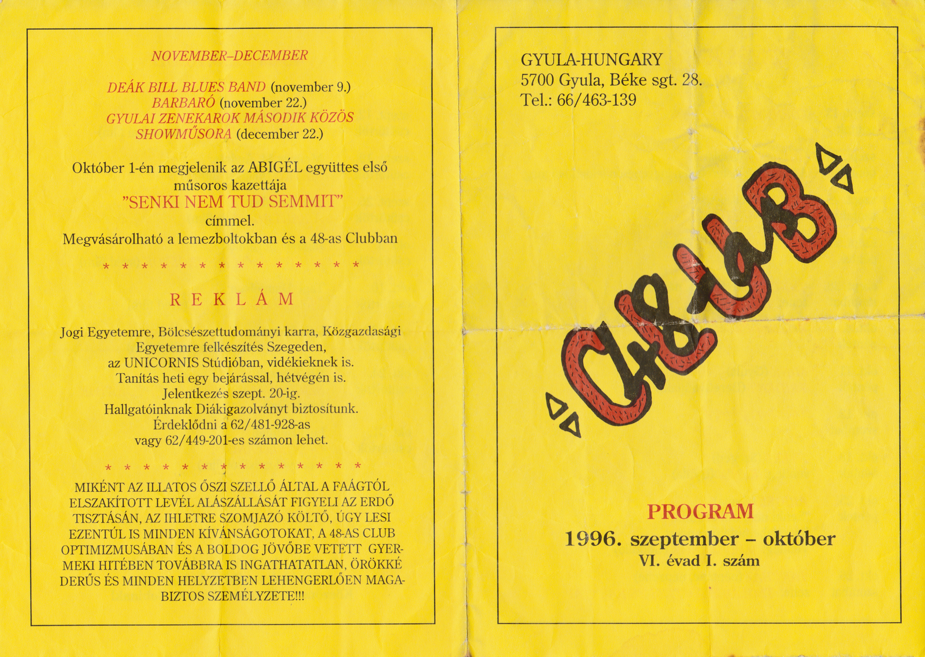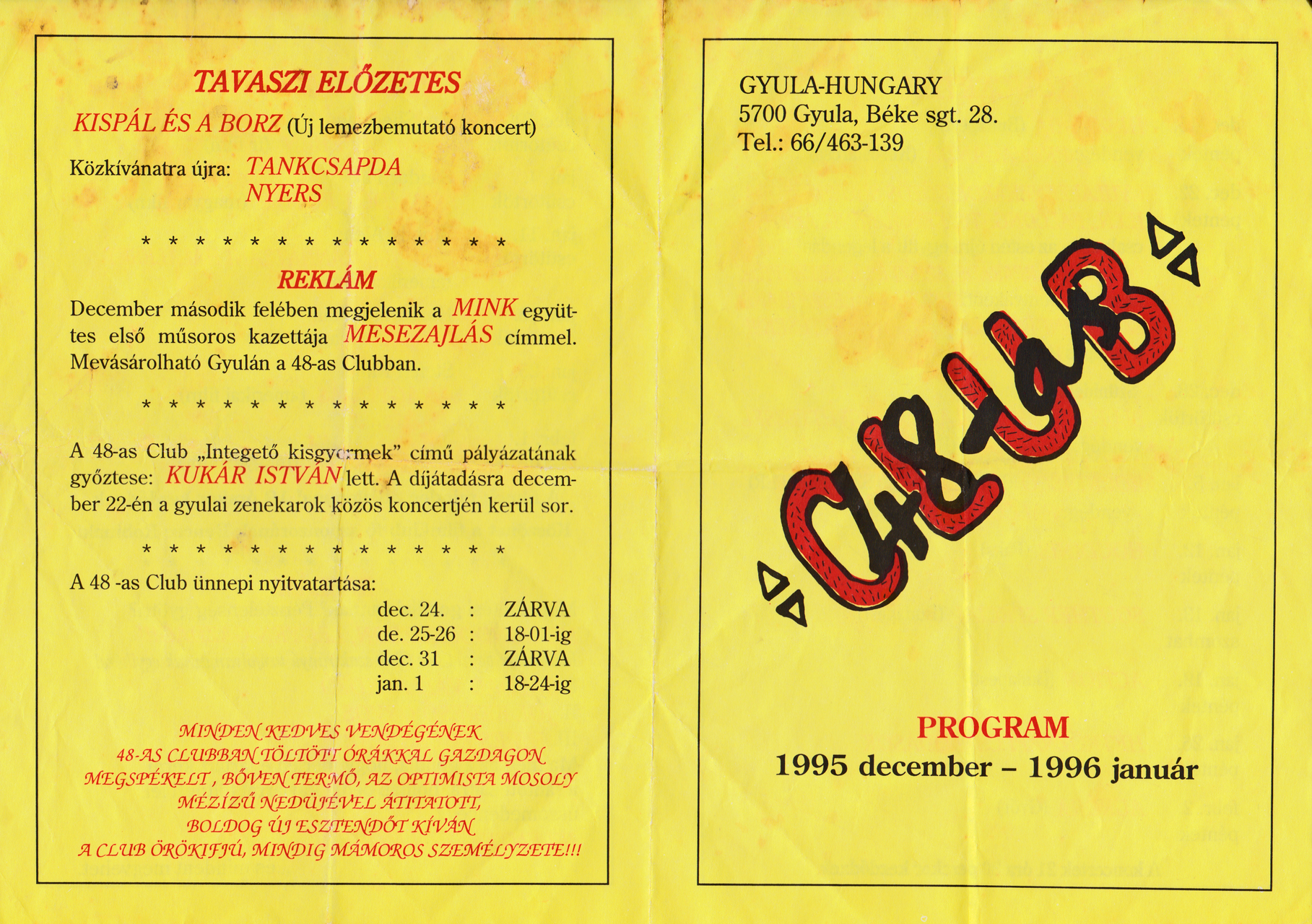 Most valahogy mégis egy 30 évvel ezelőtti karácsony jár a fejemben. Valószínűleg az ember azokra a dolgokra gondol – legalábbis én ilyen vagyok –ilyenkor, ünnepek táján , amelyek leginkább hiányoznak az életéből. Mert koncertet, filmklubot és táncházat – ha nem is pont úgy, ahogy ott és akkor – most is lehet szervezni. Van azonban egy dolog, aminek a legújabb idők valahogy nem igazán kedveznek, és én ebben az egész 48-as Club dologban talán erre vagyok a legbüszkébb, a jelenből pedig talán ez hiányzik legjobban. Arról a közösségről van szó, amely maga volt a 48-as Club. Egy minden irányban nyitott, szeretetteljes, toleráns, megértő és befogadó közösség. Egy közösség, ahol bárki elfért, bármit gondolt önmagáról és a világról. Ahová, ha valaki életében először betért, senki nem kérdezett tőle semmit, egyszerűen csak mindenki örült, hogy eggyel megint többen vagyunk. Nem megingathatatlan hitek, kőbe vésett igazságok voltak, csak szabad gondolatok, vélemények és nézőpontok. Mindenki kíváncsi volt a másikéra, mindenki épült egy kicsit a másikétól. Ez az a szabad és friss levegő, ami a 48-as Club közösségét napi szinten átjárta, és ez az a levegő, amelynek a hiányát mostanság minden percben érzem.