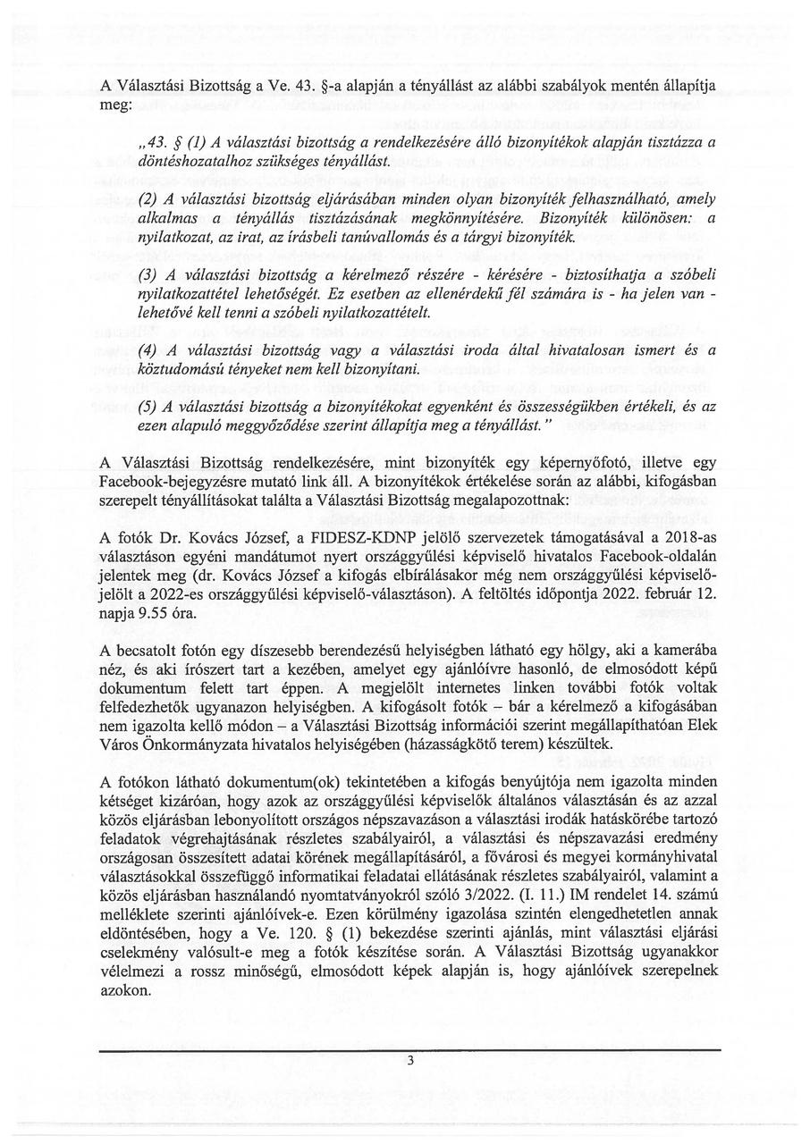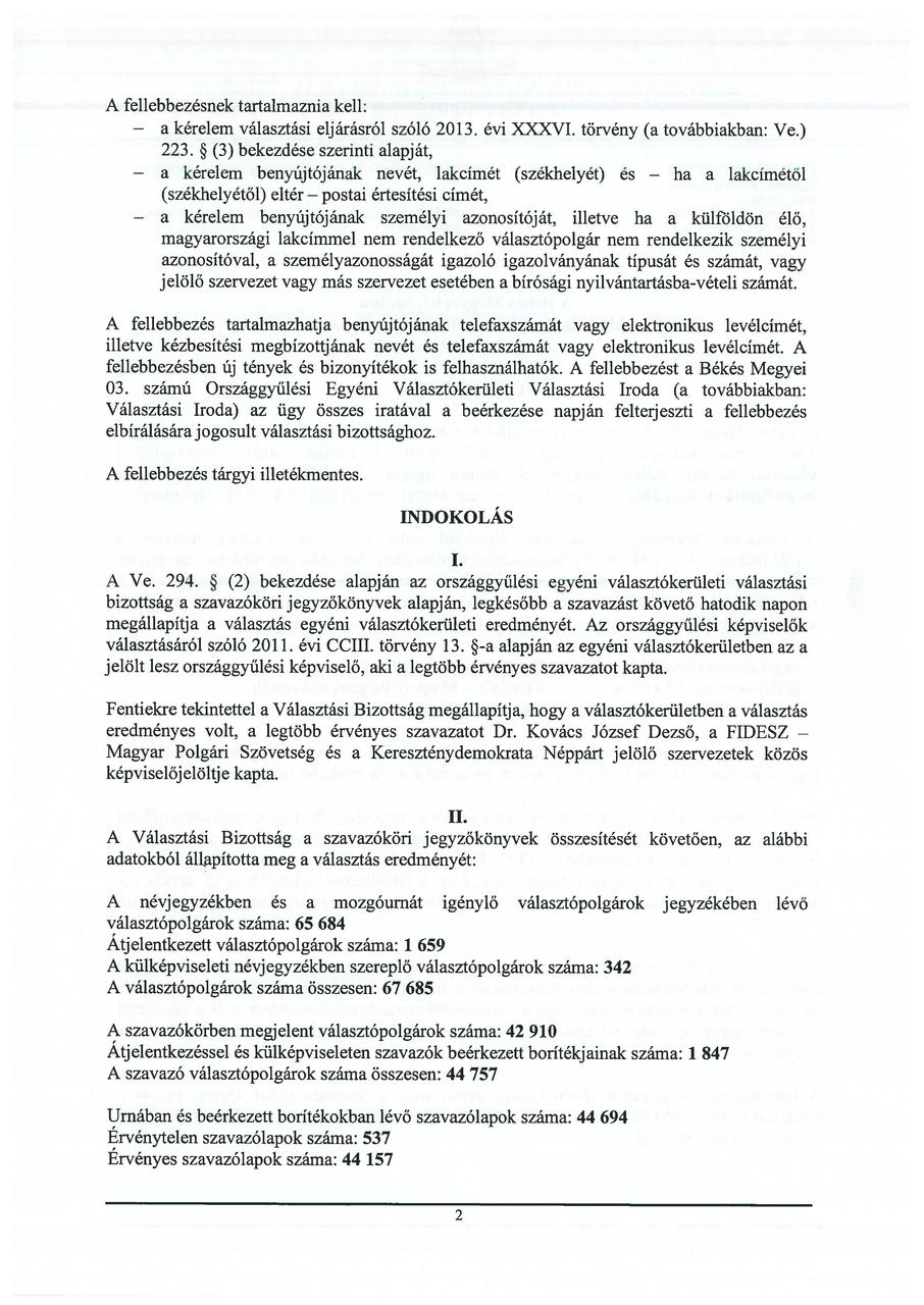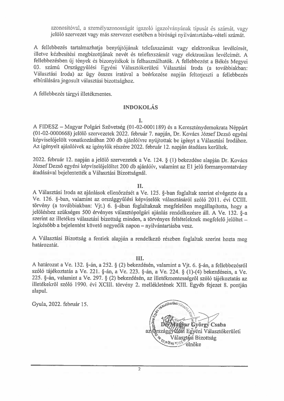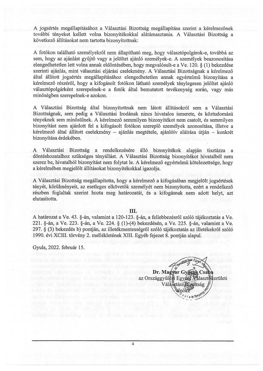 - azokat a jogszabályhelyeket, amelyek alapján a választási bizottság a határozatot hozta,