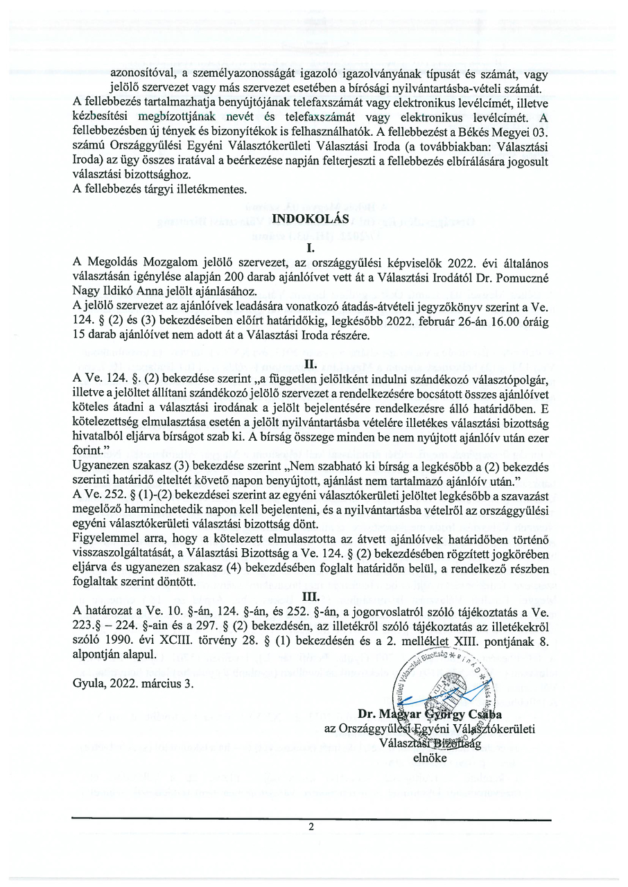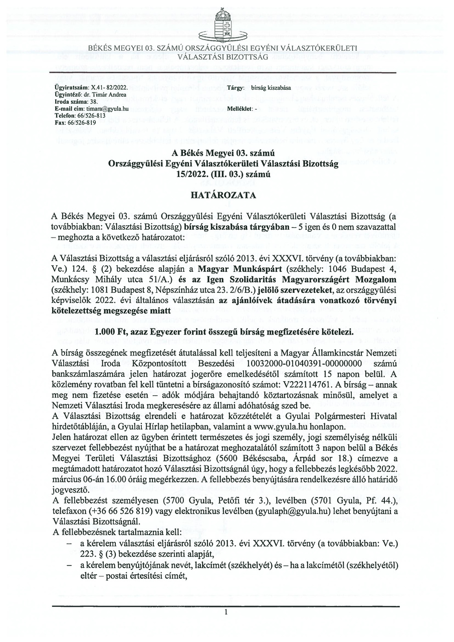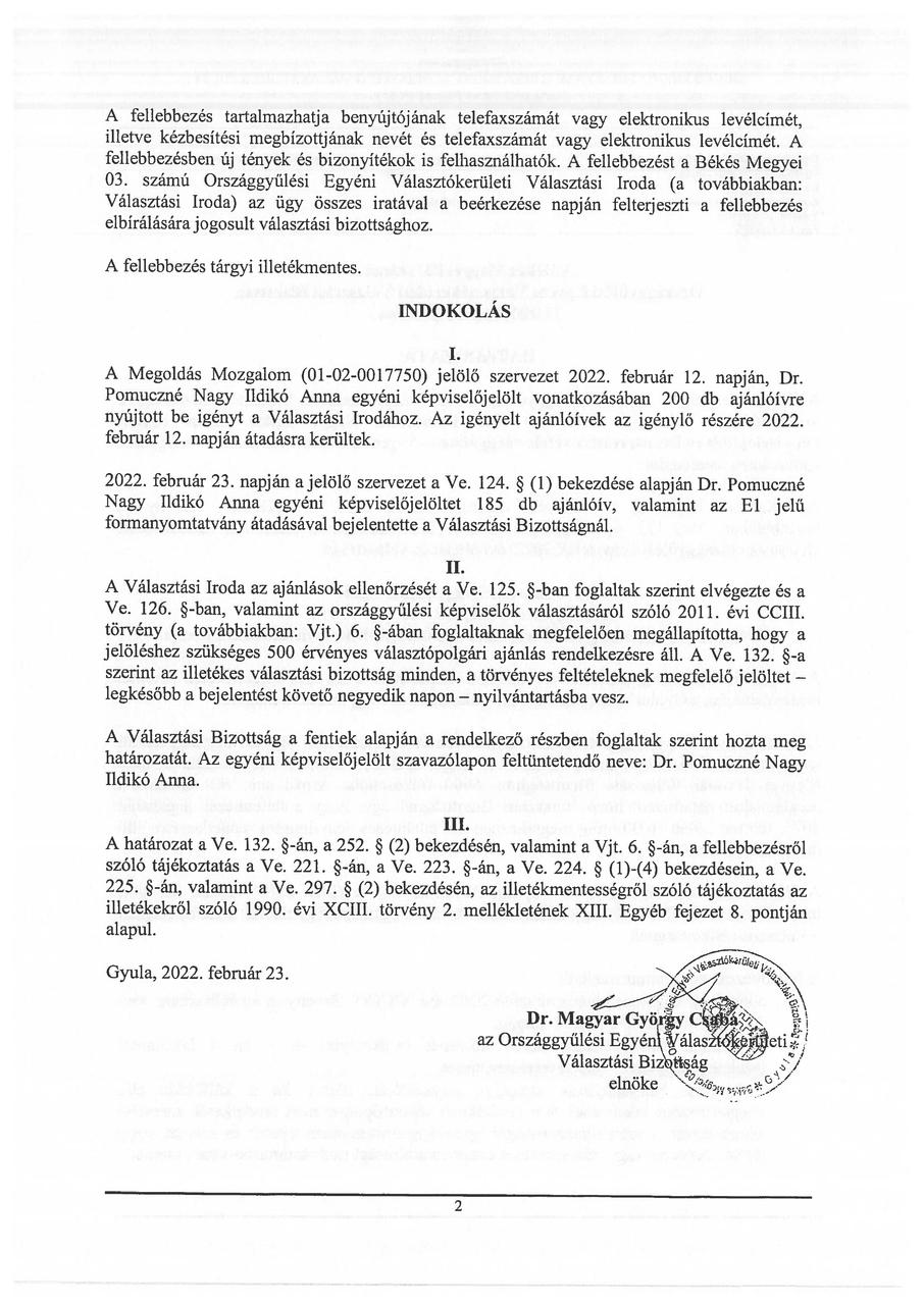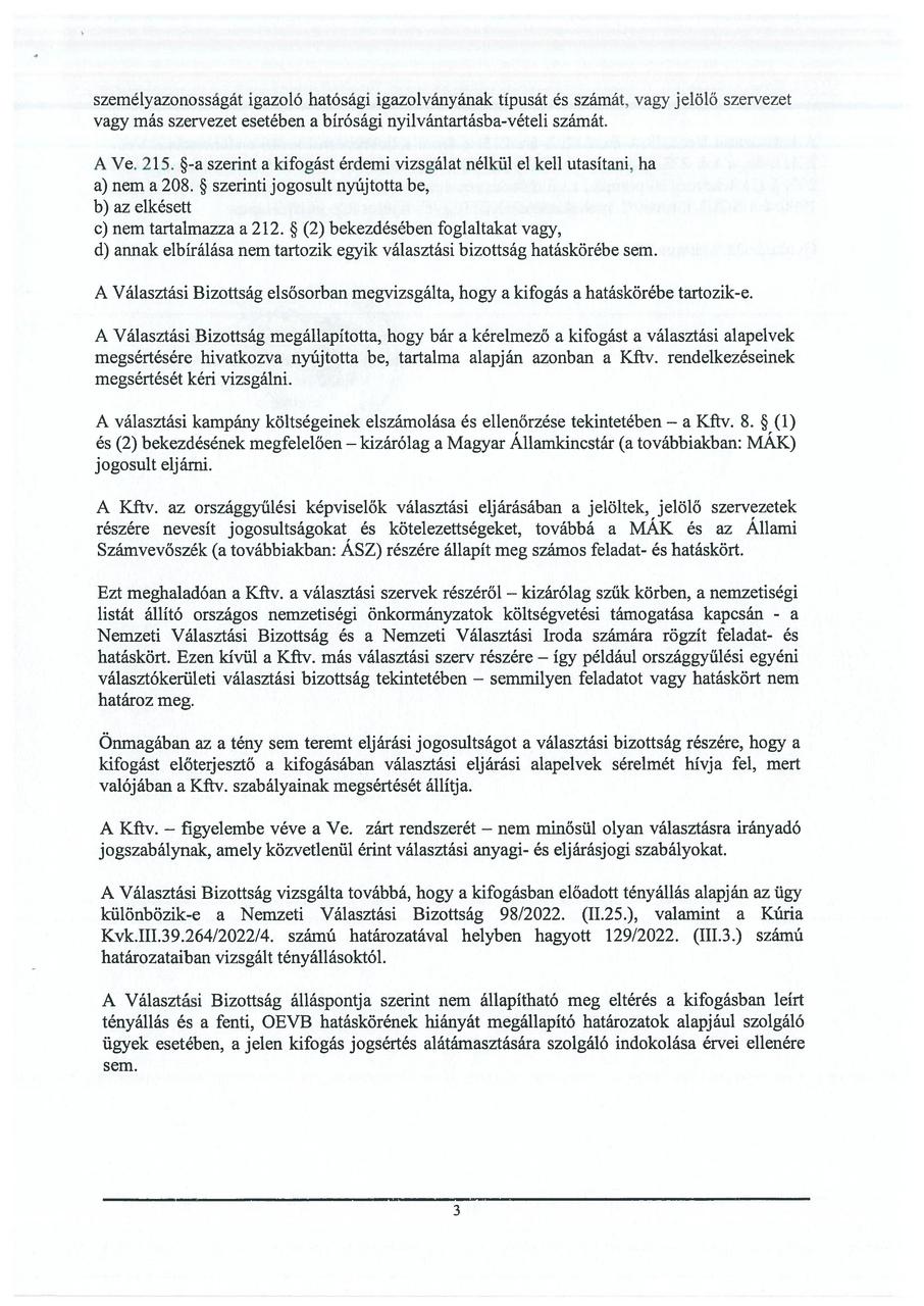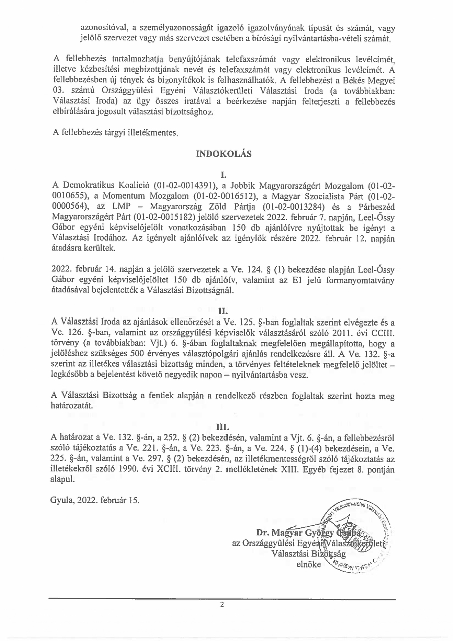 - azokat a jogszabályhelyeket, amelyek alapján a választási bizottság a határozatot hozta,