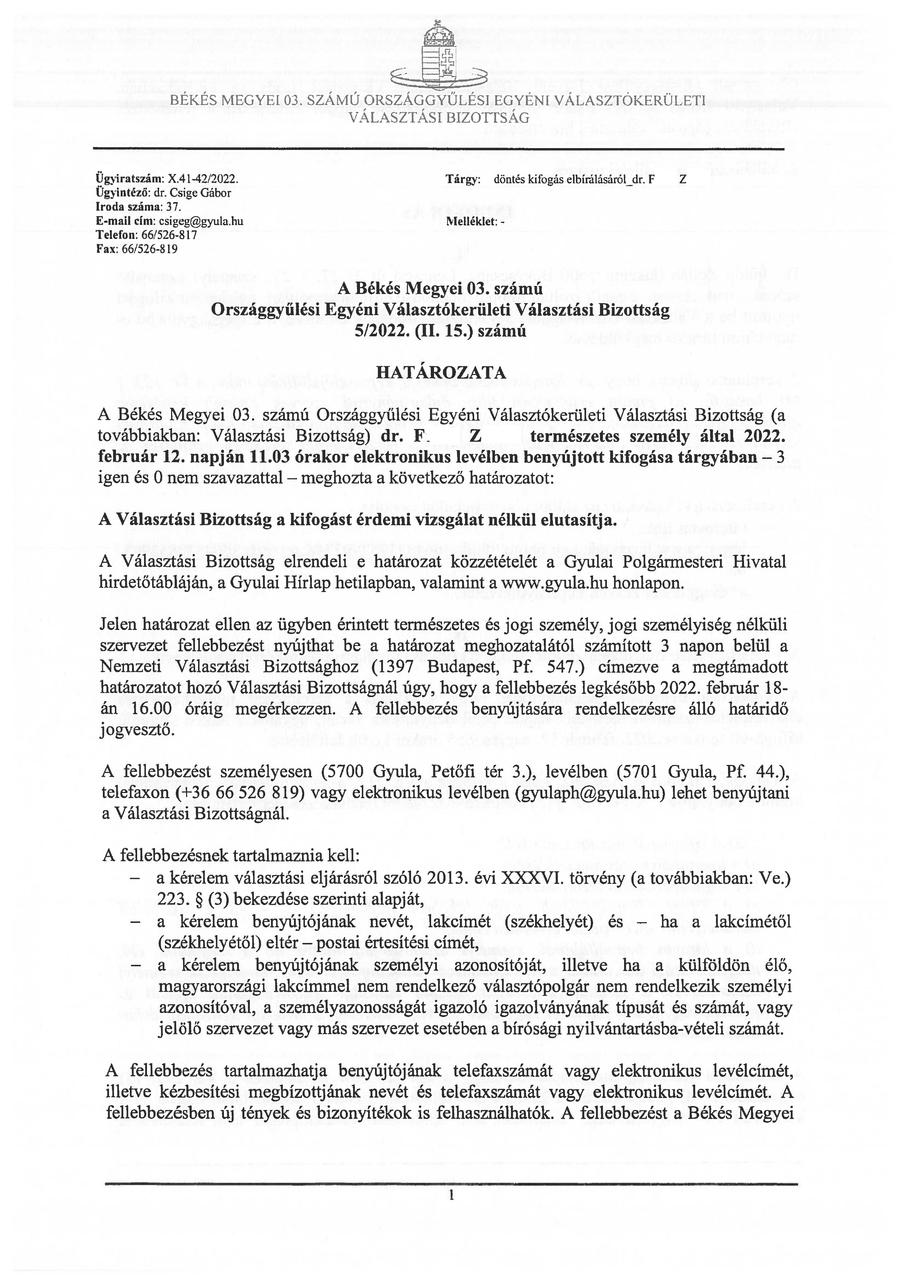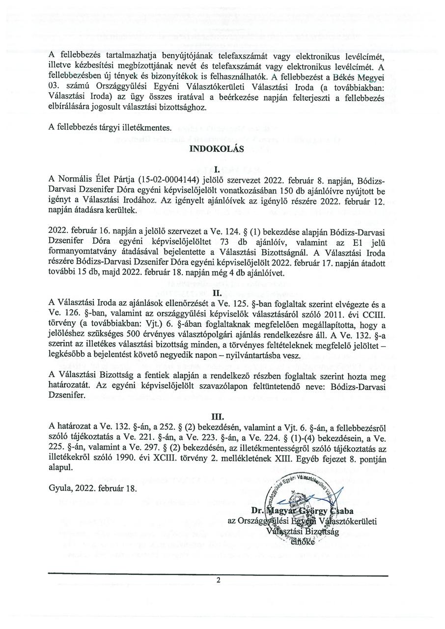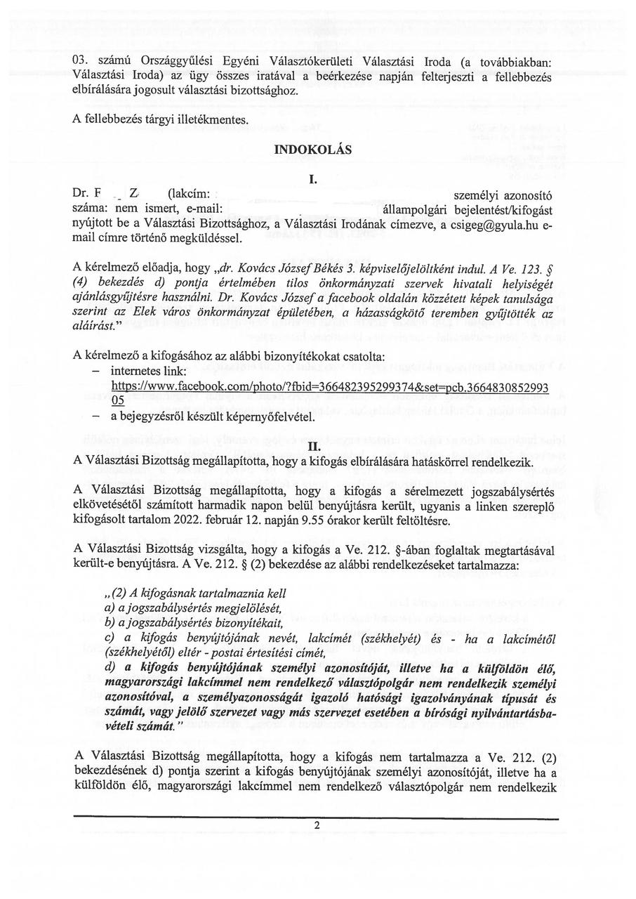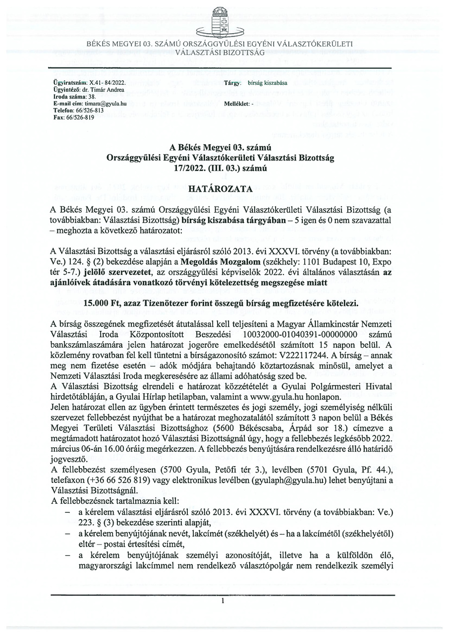 - azokat a jogszabályhelyeket, amelyek alapján a választási bizottság a határozatot hozta,