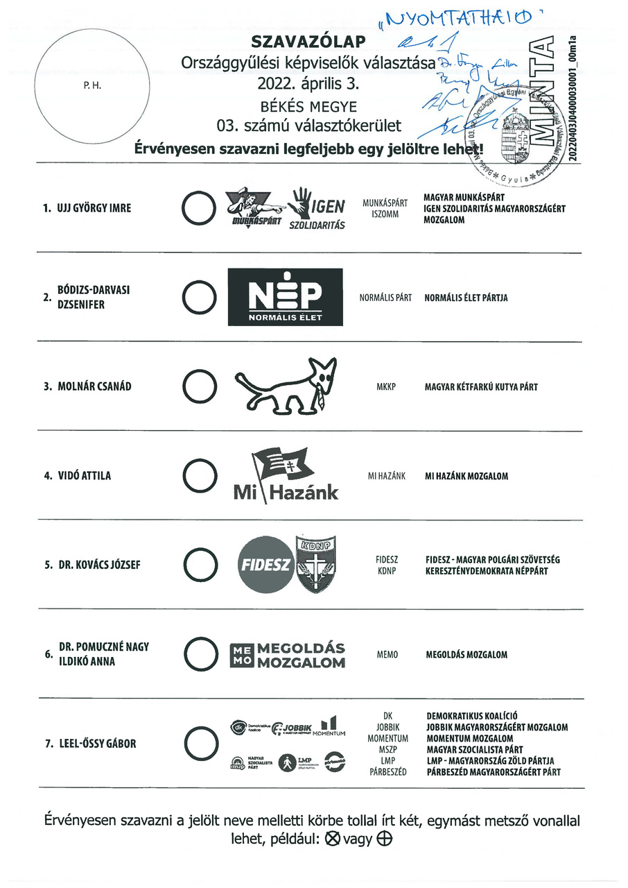 Azt, hogy a választópolgár melyik szavazókörben szavazhat, a Nemzeti Választási Iroda által, 2022. február 11. napjáig kiküldött értesítő tartalmazza.
