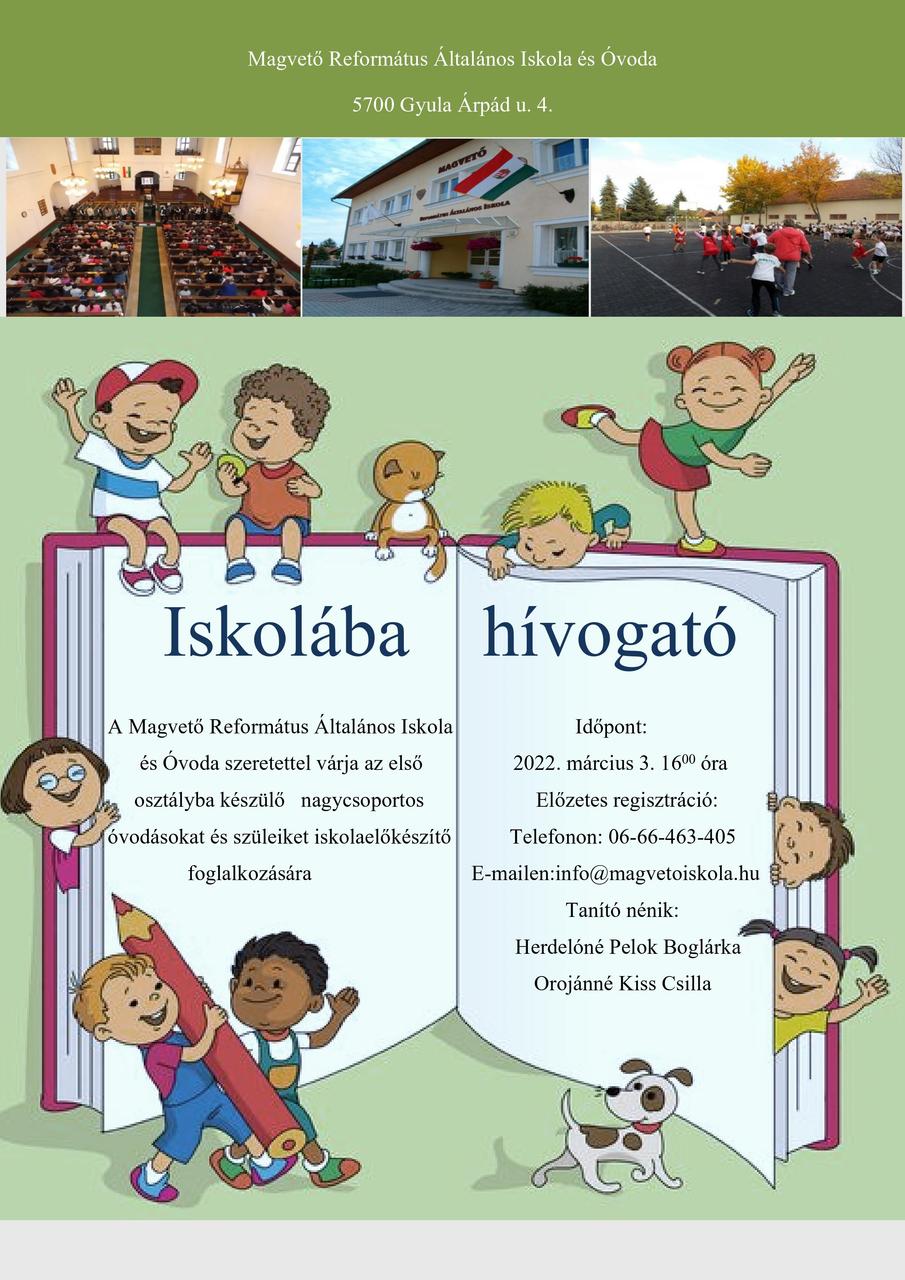Iskola-előkészítő foglalkozásra várja az érdeklődőket a Magvető Református Általános Iskola és Óvoda. Az eseményt március 3-án, csütörtökön 16 órakor tartják. Előzetesen regisztrálni a 0666/463-405-ös telefonszámon, valamint a info@magvetoiskola.hu email címen lehet.