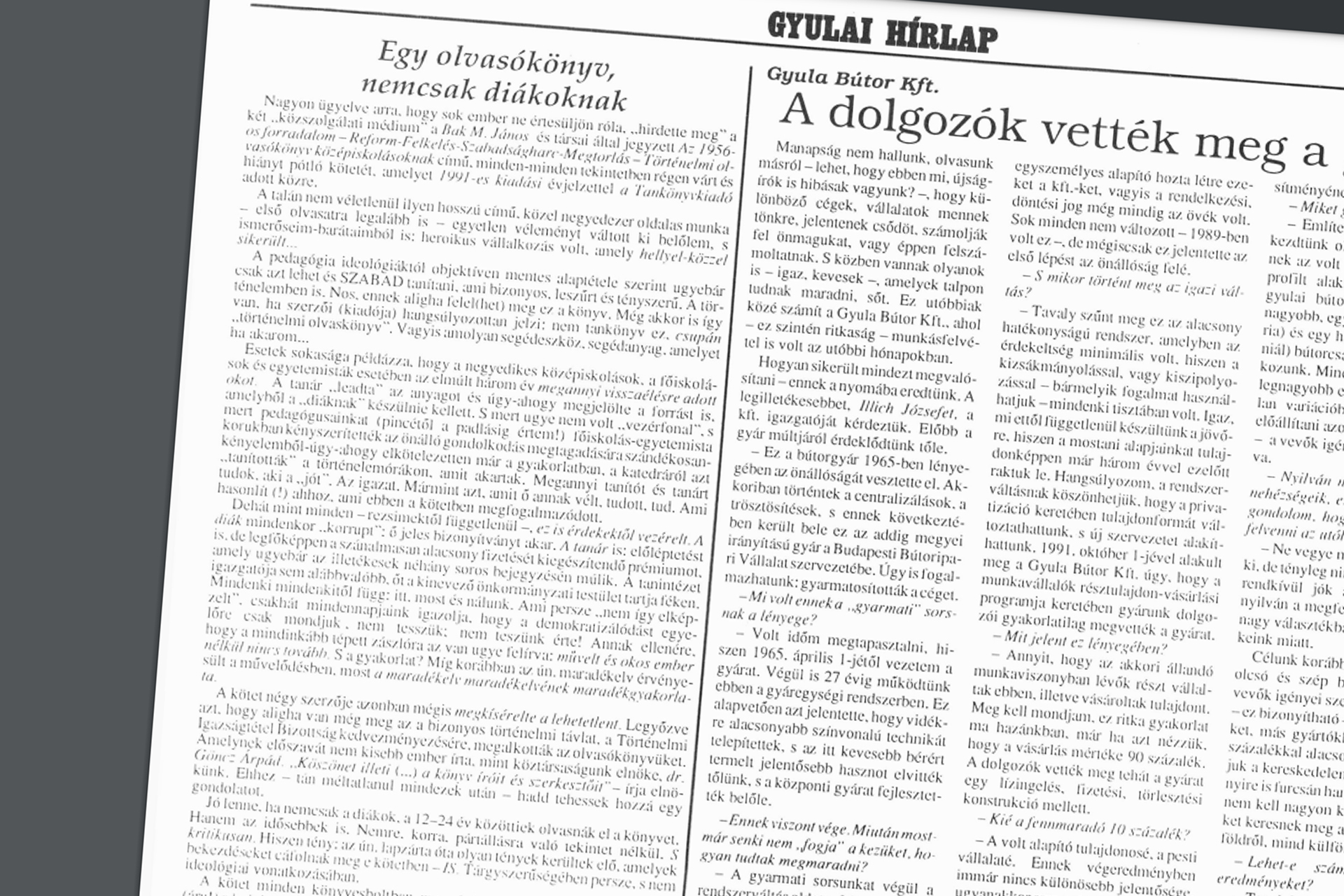 Még több régi cikk olvasható a Gyulai Hírlap online archívumában. E-előfizetés 3500 Ft/év.
