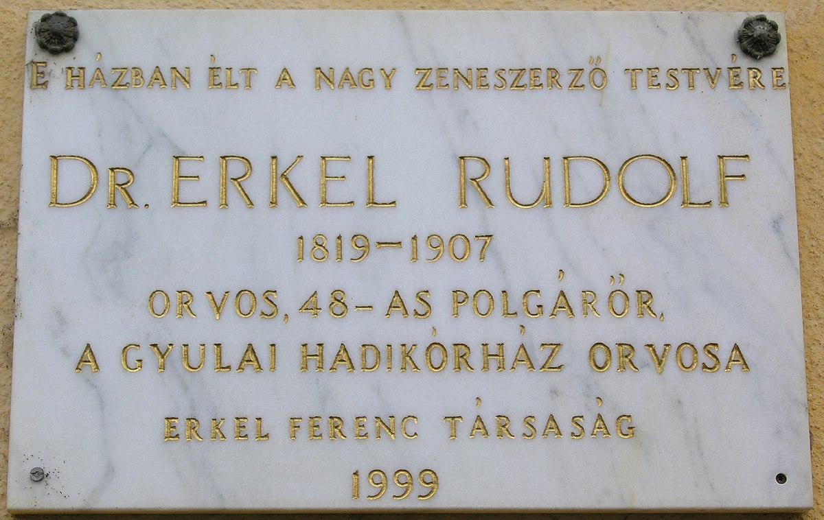 115 évvel ezelőtt, 1907. március 9-én hunyt el Erkel Rudolf Rezső (született 1819-ben) orvos. Apja Erkel József kántortanító, anyja Ruttkay Klára Terézia. Testvére Erkel Ferenc zeneszerző. Elemi iskoláit Gyulán végezte el, majd középiskolába Kolozsváron járt. Orvosi diplomáját Pesten szerezte meg. Első munkája is ide köti: színházi orvos lett a Pesti Magyar Színházban. 1845-ben feleségül vette Unger Ferenc pesti kovácsmester lányát, Karolinát. 1846-ban a házaspár Gyulára költözött. Kinevezték Békés vármegye tiszteletbeli főorvosának, majd megnyitotta orvosi rendelőjét. Jónevű, neves orvos lett. Az 1848-49-es forradalom és szabadságharc alatt a Damjanich Hadikórház honvédorvosa volt. Jó barátságot ápolt Jókai Mórral és feleségével. 1863-ban egyik alapítótagja és részvényese volt a Békésvármegyei Takarékpénztári Egyesületnek. 1868-tól az egyesület elnök-igazgatójának választották meg. Ezt az állást közel 40 évig, haláláig töltötte be. Ettől az időponttól kezdve megszüntette az orvosi rendelőjét. Aktívan részt vett a város közéletében, segítette a városi mozgalmakat, összetartotta az Erkel-családot, a Városi Múzeumra hagyta Erkel aranykoszorúját.