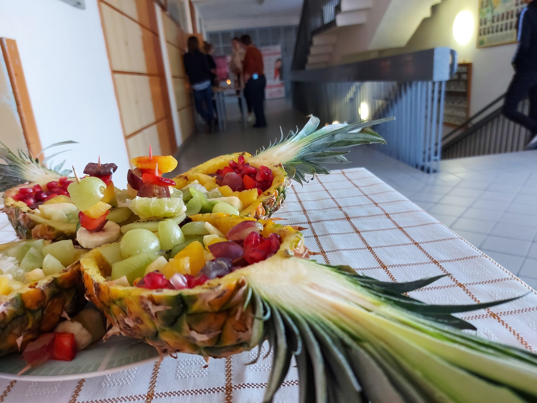 A könyvtárban szónokversenyt szerveztek, amelyen az arra vállalkozók 3-5 percben kampányoltak egy előre megadott, egészségmegőrzéshez kapcsolódó témában. A folyosókon a salátakészítés mesterei mutatták be specialitásaikat, amiket Gombos Anett dietetikus és Beke Szilvia tanszékvezető főiskolai tanár, dékánhelyettes zsűrizett.