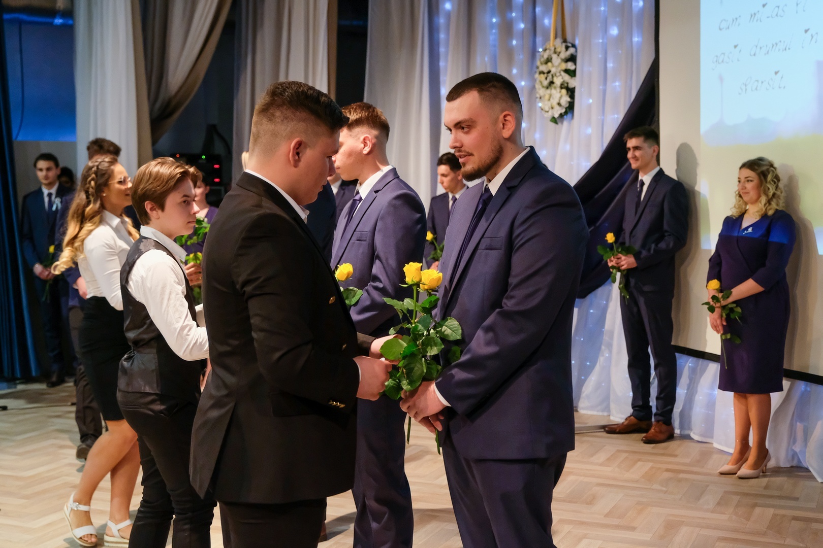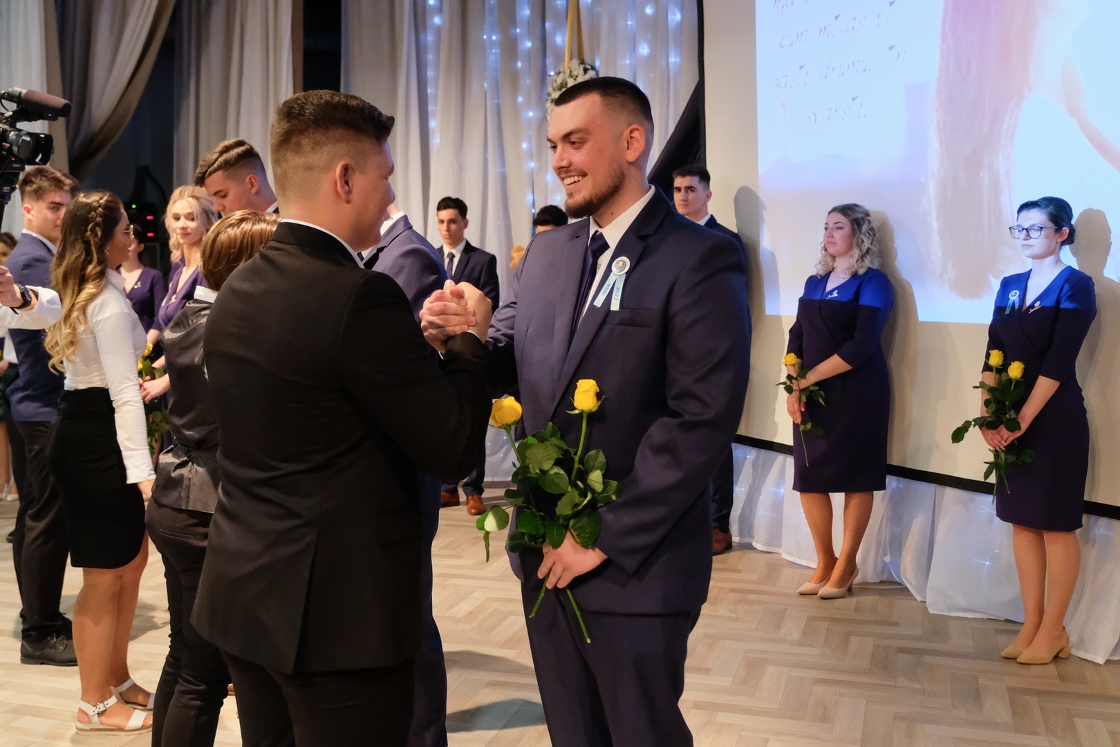 Két osztály negyvenöt végzős diákjának ruhájára tűzték fel a középiskolai évek végét jelképező szalagot március 27-én a Nicolae Bălcescu román gimnáziumban.