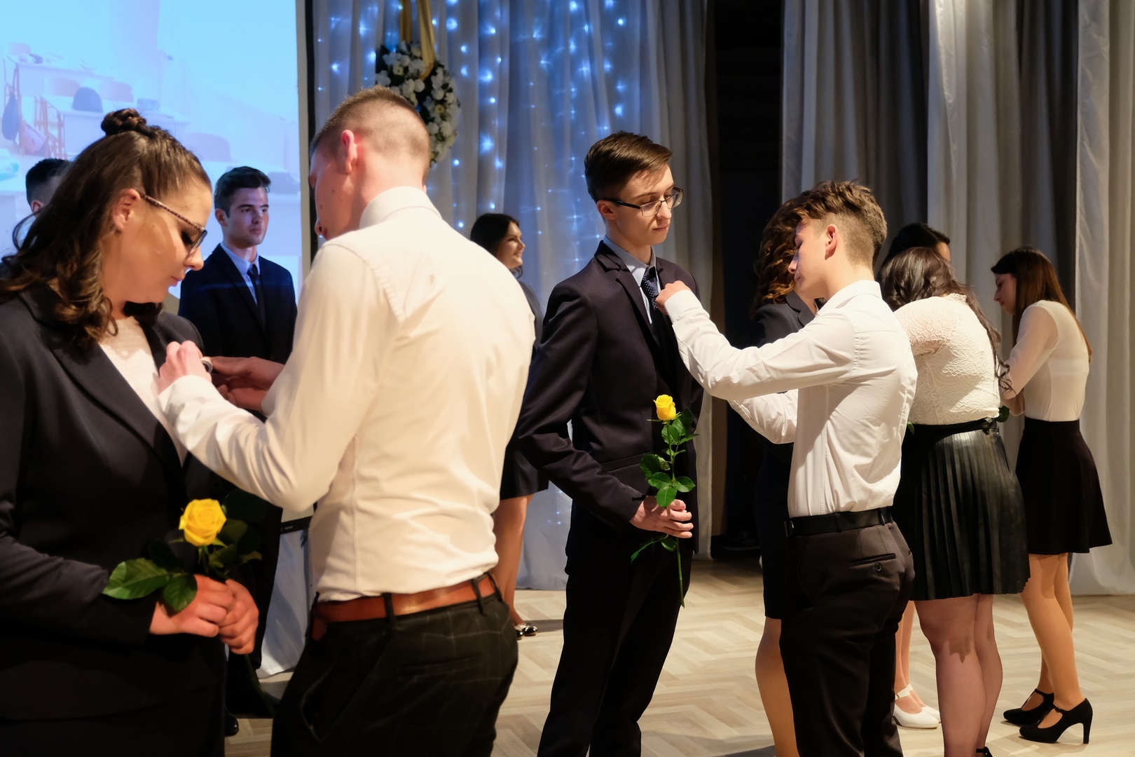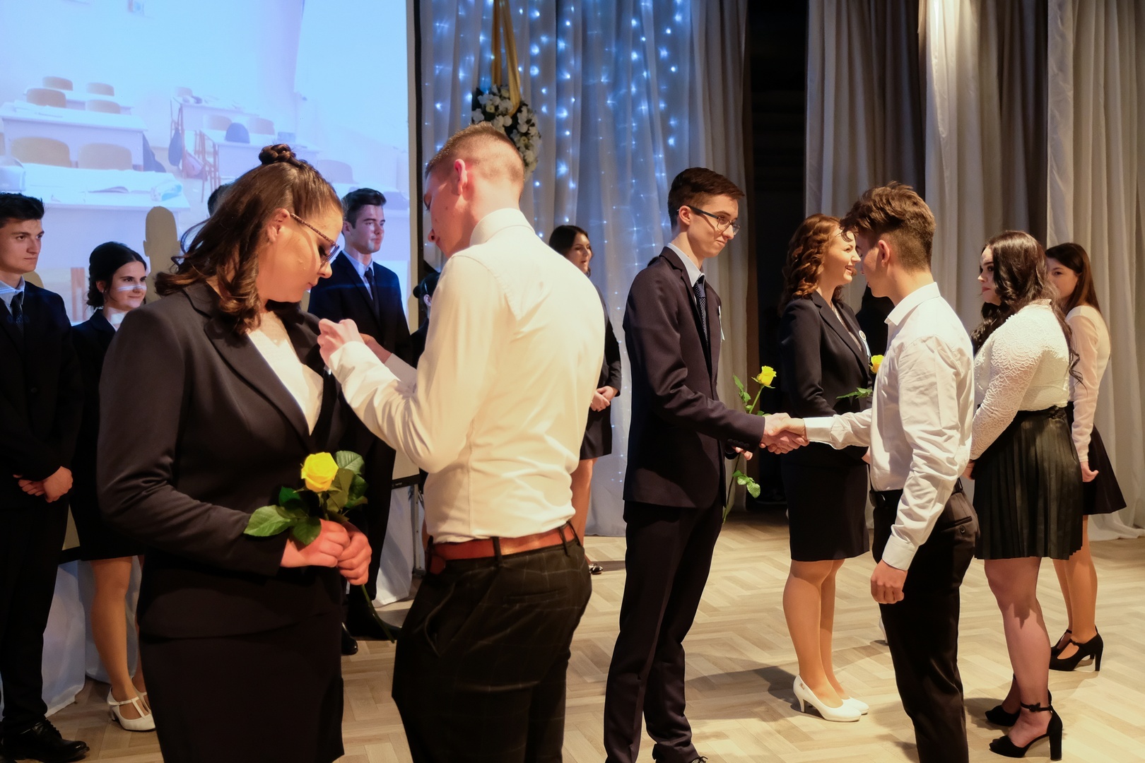 Az ünnepi köszöntő után a maturandusok adtak műsort, majd a szalagok feltűzésével és a keringővel zárult az esemény.