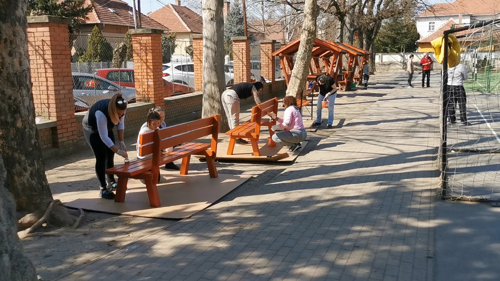 Zöld napra várták az elmúlt hétvégén a gyerekeket és szüleiket az Implom József általános iskolába, ahol közös munkával padokat festettek, kertészkedtek és dekorációkat is készítettek a jelenlévők.