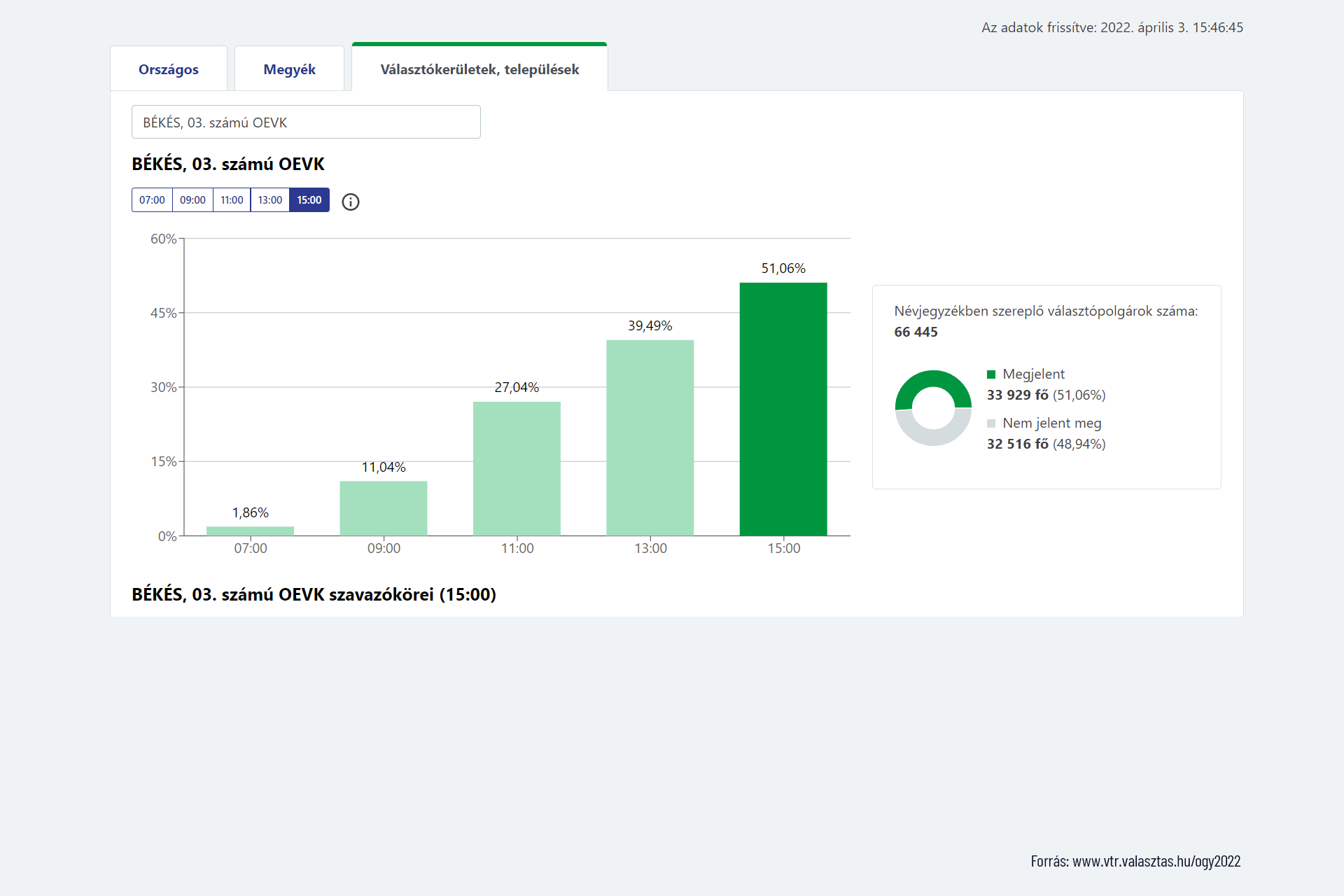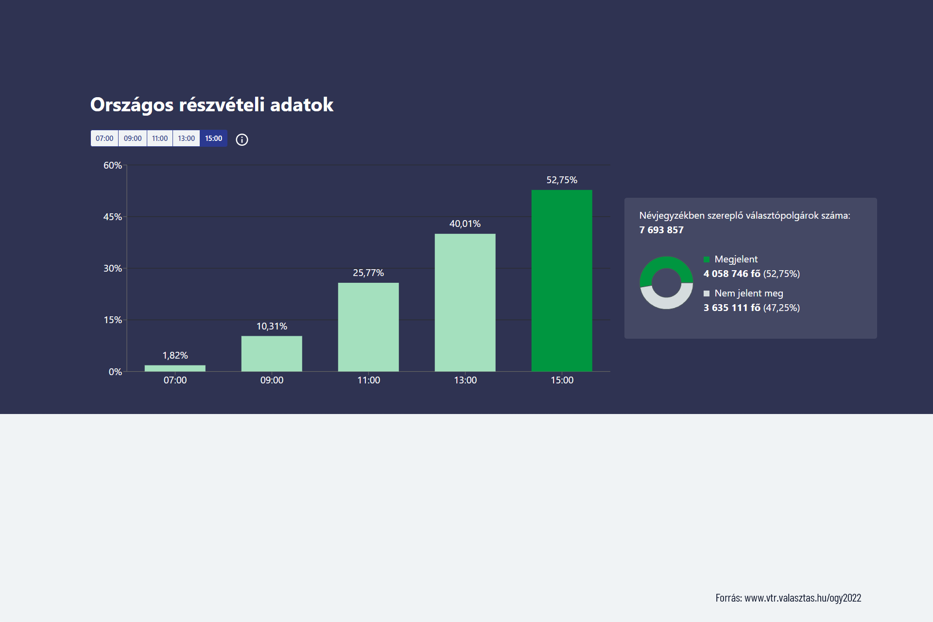 Az NVI a nap folyamán kétóránként közöl összesítést a részvételi arányokról. A következő adatok 17 óra után lesznek elérhetők az NVI honlapján.
