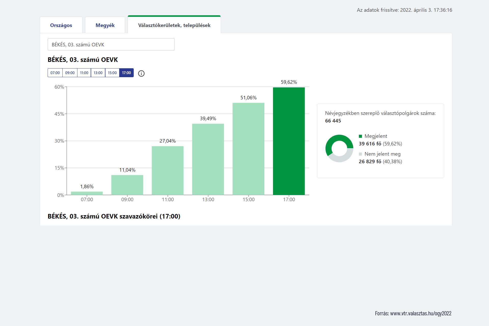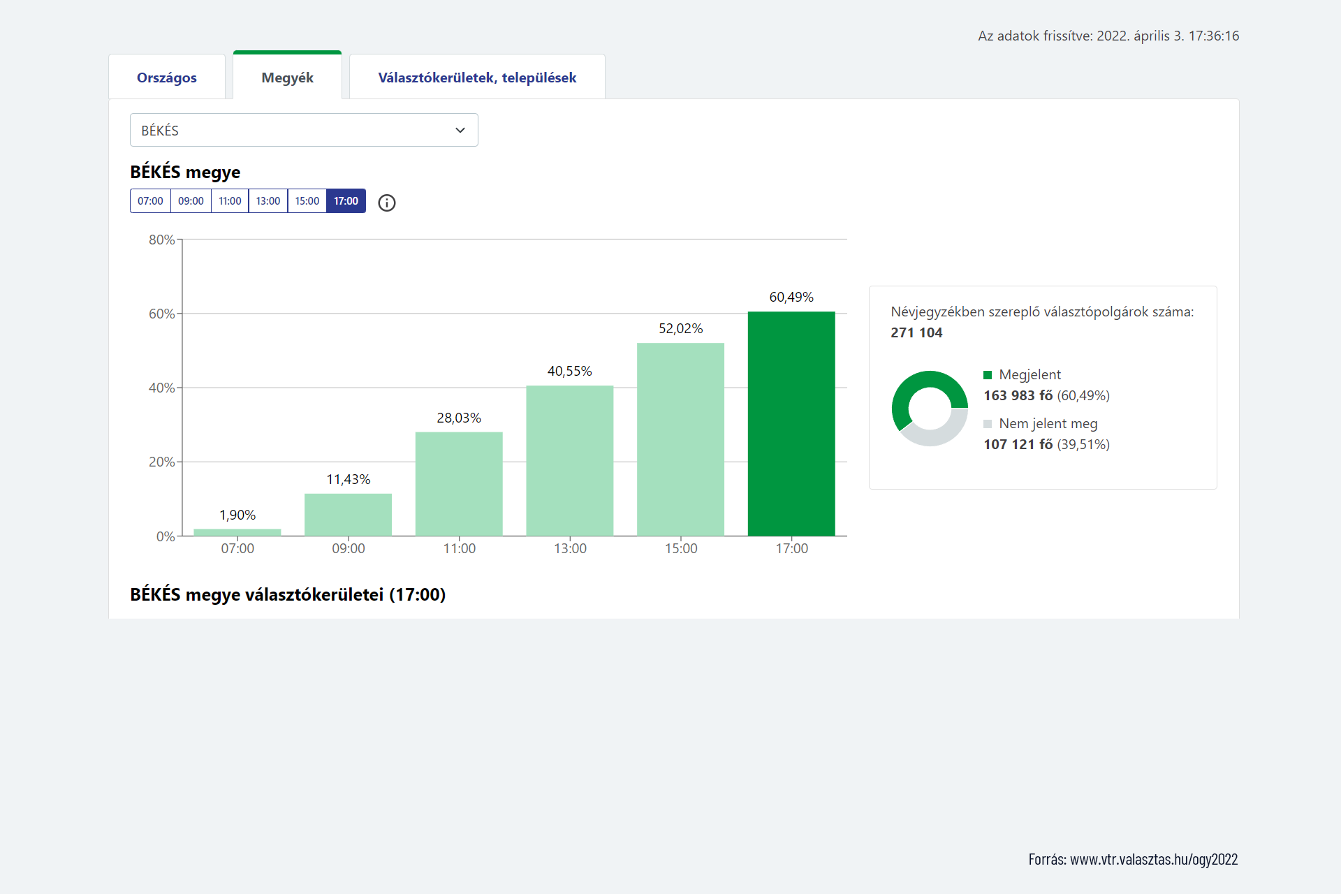Békés megye 60,49 százalék 163 983 szavazó