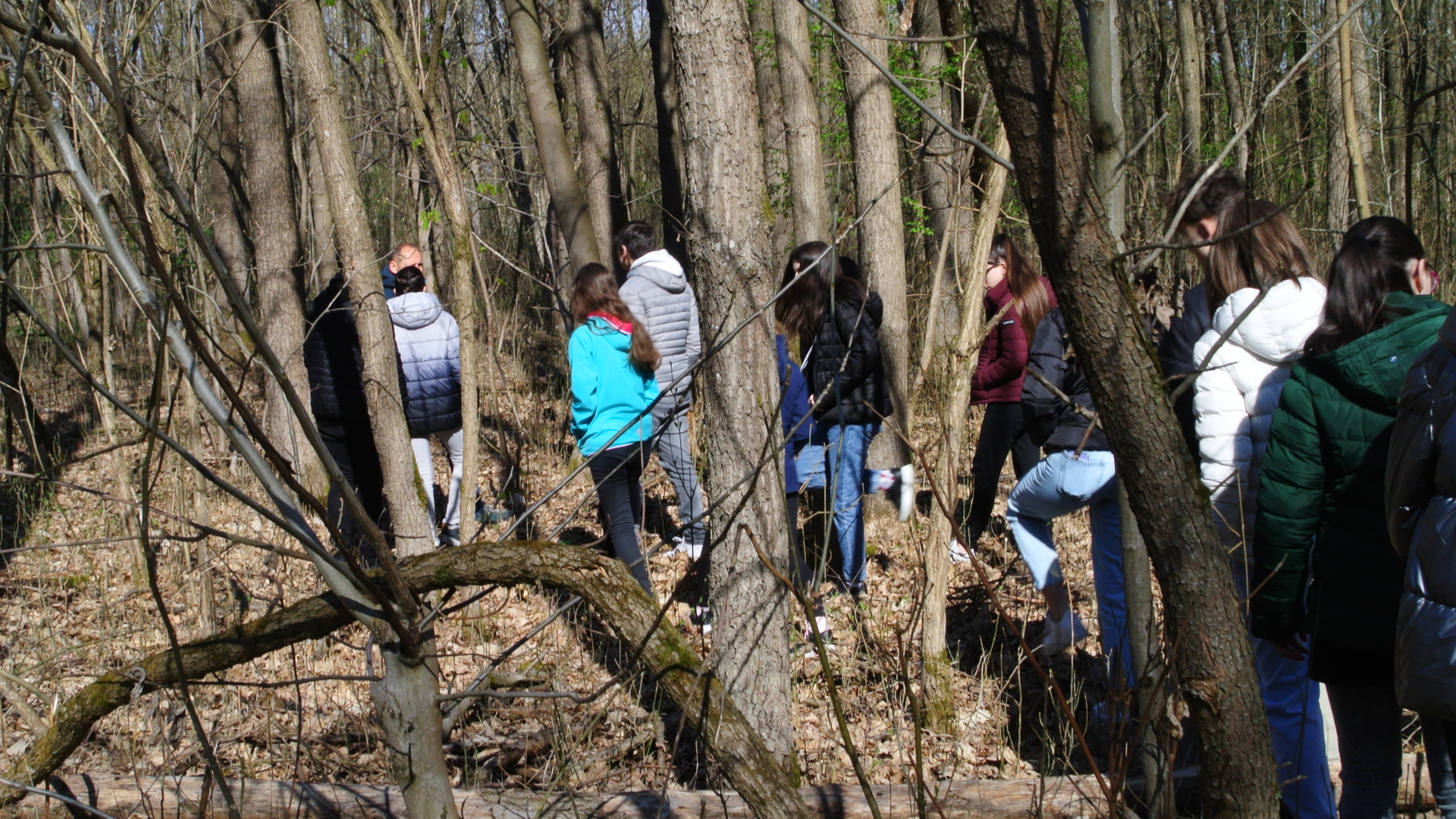 A beszélgetésre épülő természetjárást Czirle Csaba vezette. A tanulók megvizsgálhatták a gubacsok belsejében élő darazsak bölcsőjét, kidőlt fa kérgének rejtekében élő rovarokat figyelhettek meg és a nyíló természet első hírnökeit is láthatták, mint például a virágzó húsos somfát és a martilapút.