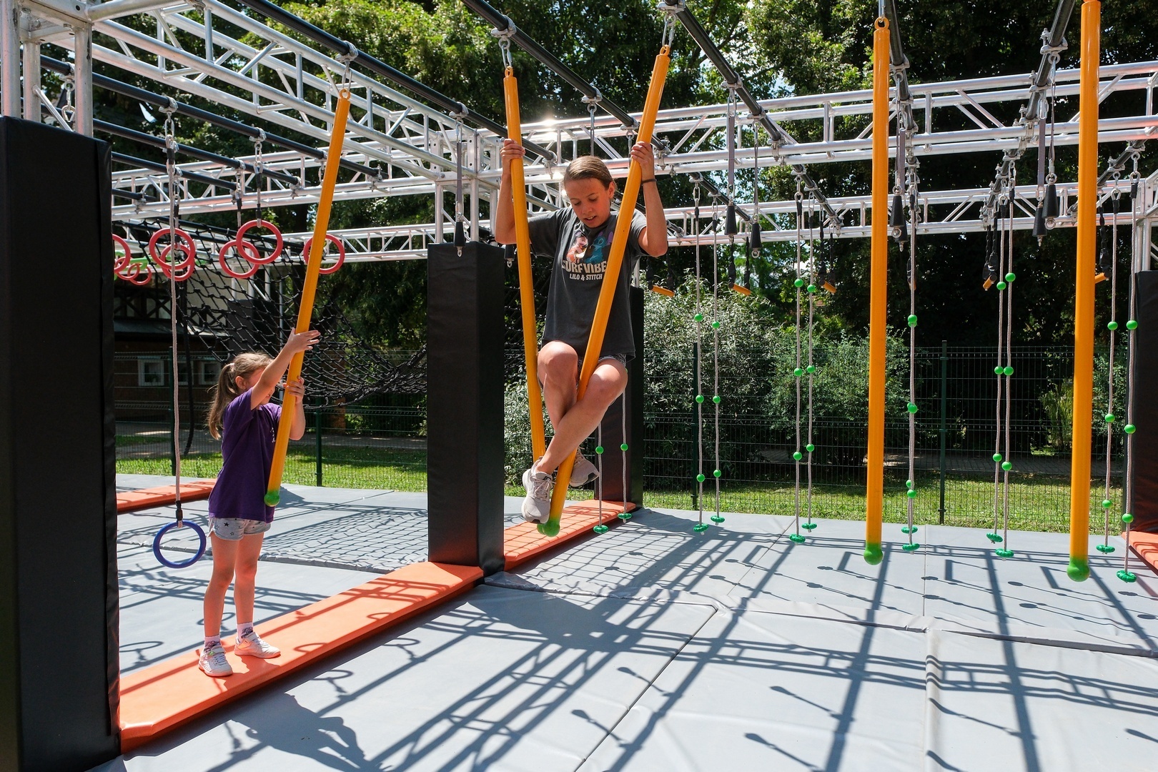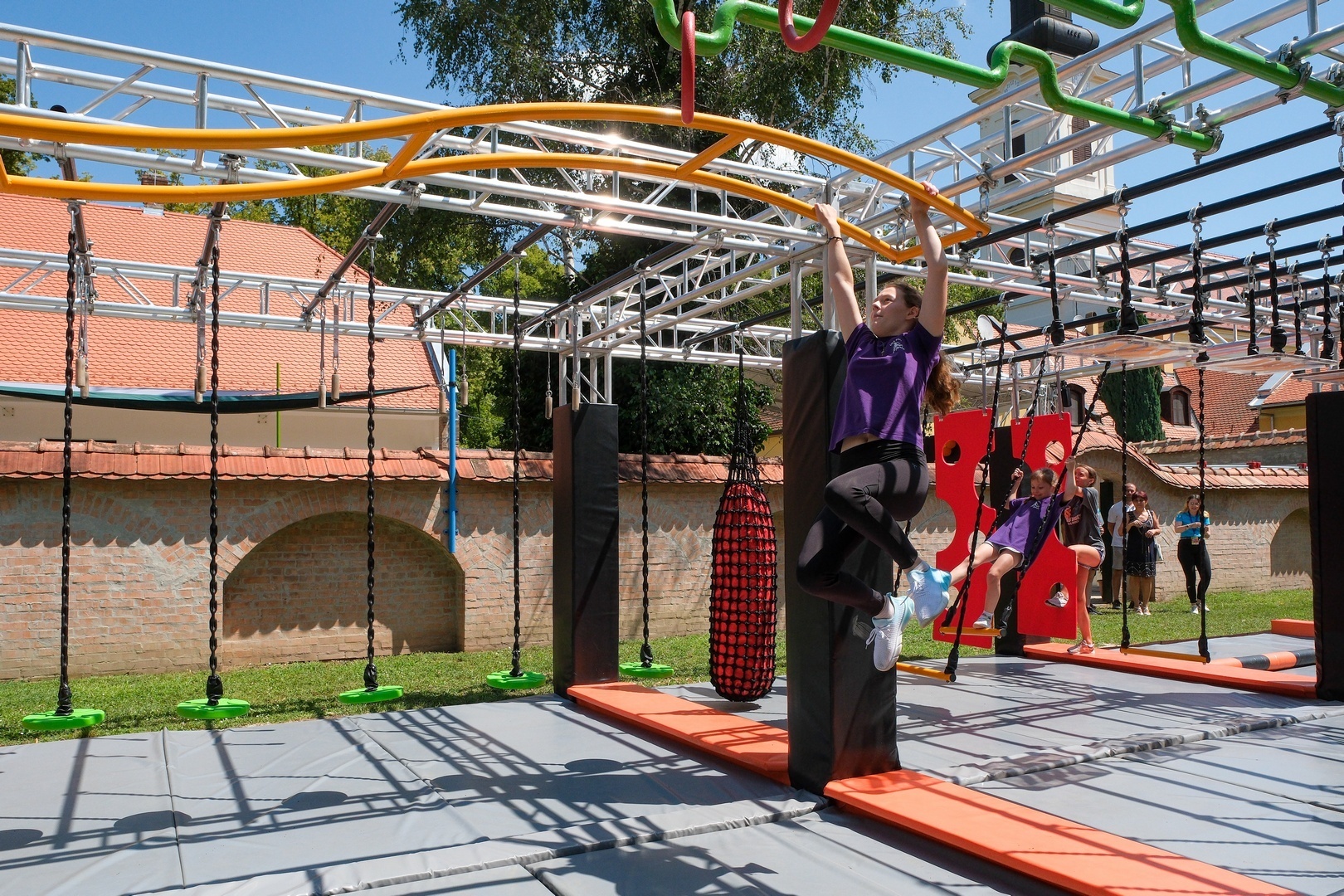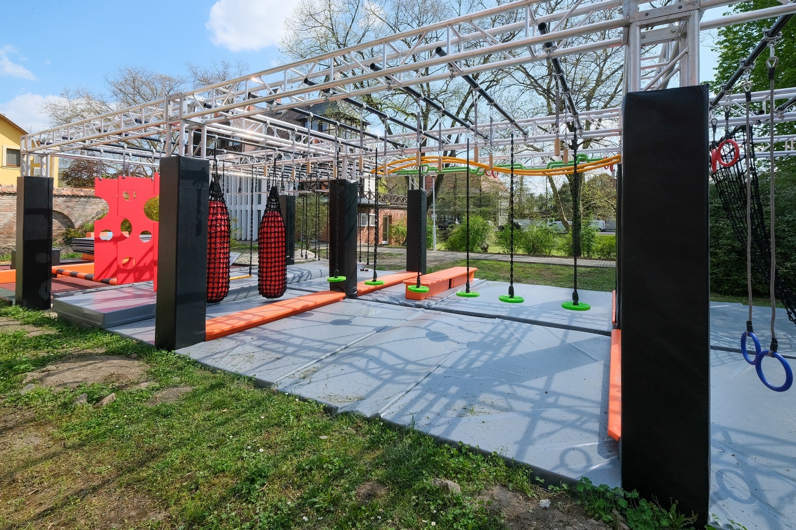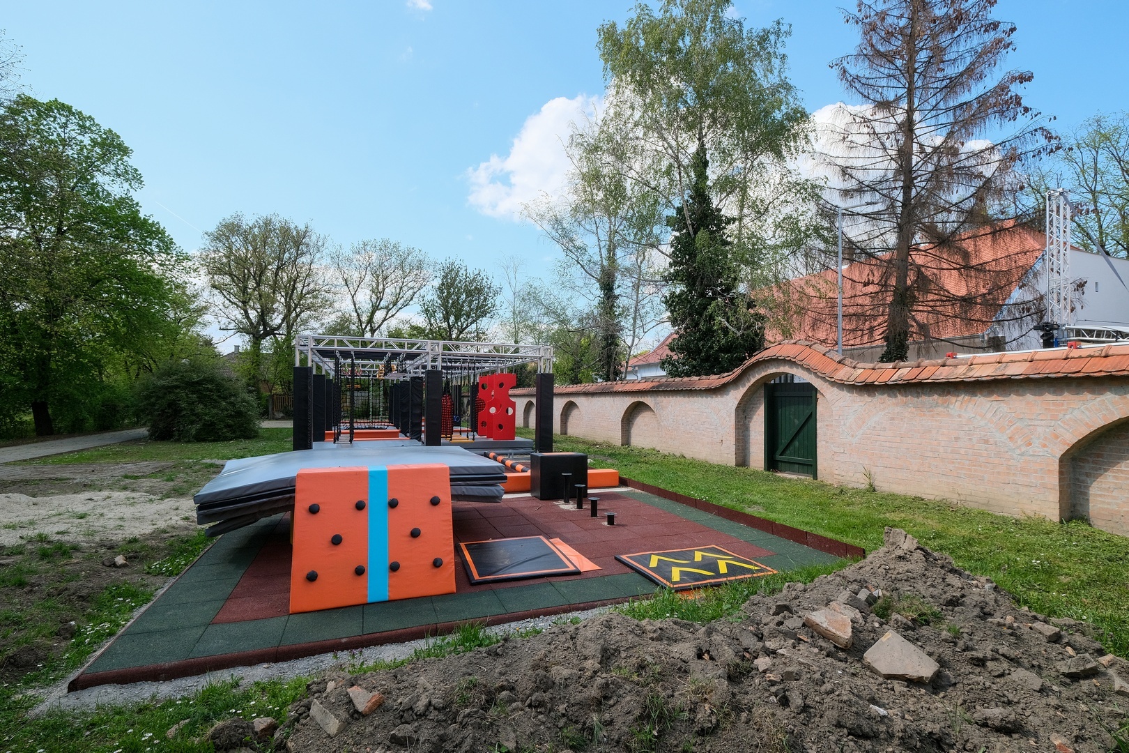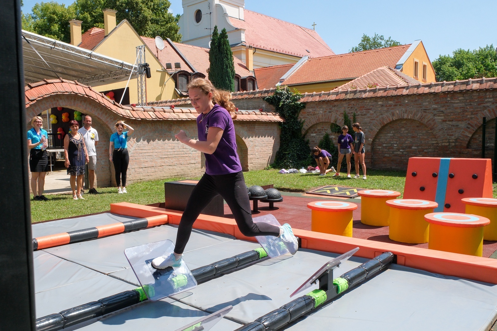 A parkosított udvaron fedett színpadot, „harci pályát”, extreme-pályát, buborékfoci-pályát, bográcsozót, szalonnasütőt, valamint bringóhintó- és airwheelkölcsönzőt alakítottak ki.