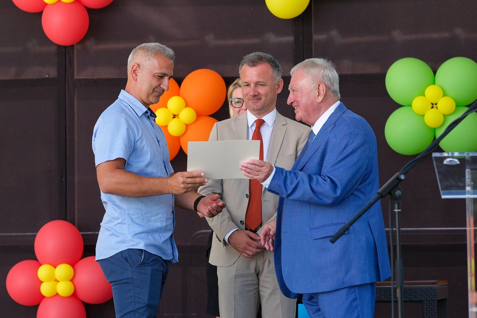A köszöntők után okleveleket adtak át a beruházásban résztvevőknek, majd szalagátvágással adták át hivatalosan a játszóházat.