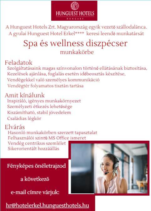 Spa- és wellnessdiszpécsert keres a Hunguest Hotel Erkel