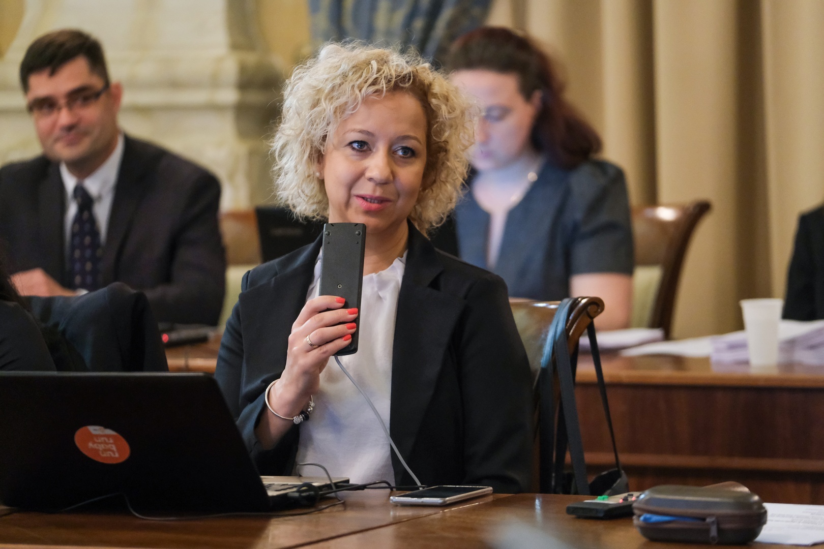 Mittag Mónika (Fidesz–KDNP) három kérdést tárt a grémium elé: elsőként arra volt kíváncsi, hogy mikor festik le a város parkjaiban található padokat, hiszen sokat megviselt a téli időjárás. Érdeklődött egy korábbi interpellációjáról, amelyben a Jókai Mór utcán tapasztalható helyzetet taglalta, ahol mindig nagy a forgalom, az egyik oldalt pedig elfoglalják a parkoló autók. Akkor ígéretet kapott arra, hogy készítenek egy tanulmányt az elvégzendő feladatokról. Utolsó témájában elmondta, hogy több városban is élő közvetítésben lehet követni a gólyafészkekben zajló életet a madarak hazatérése után, a körzetében lakók pedig felvetették, hogy az Apor téren található fészekhez is lehetne szerelni egy kamerát.