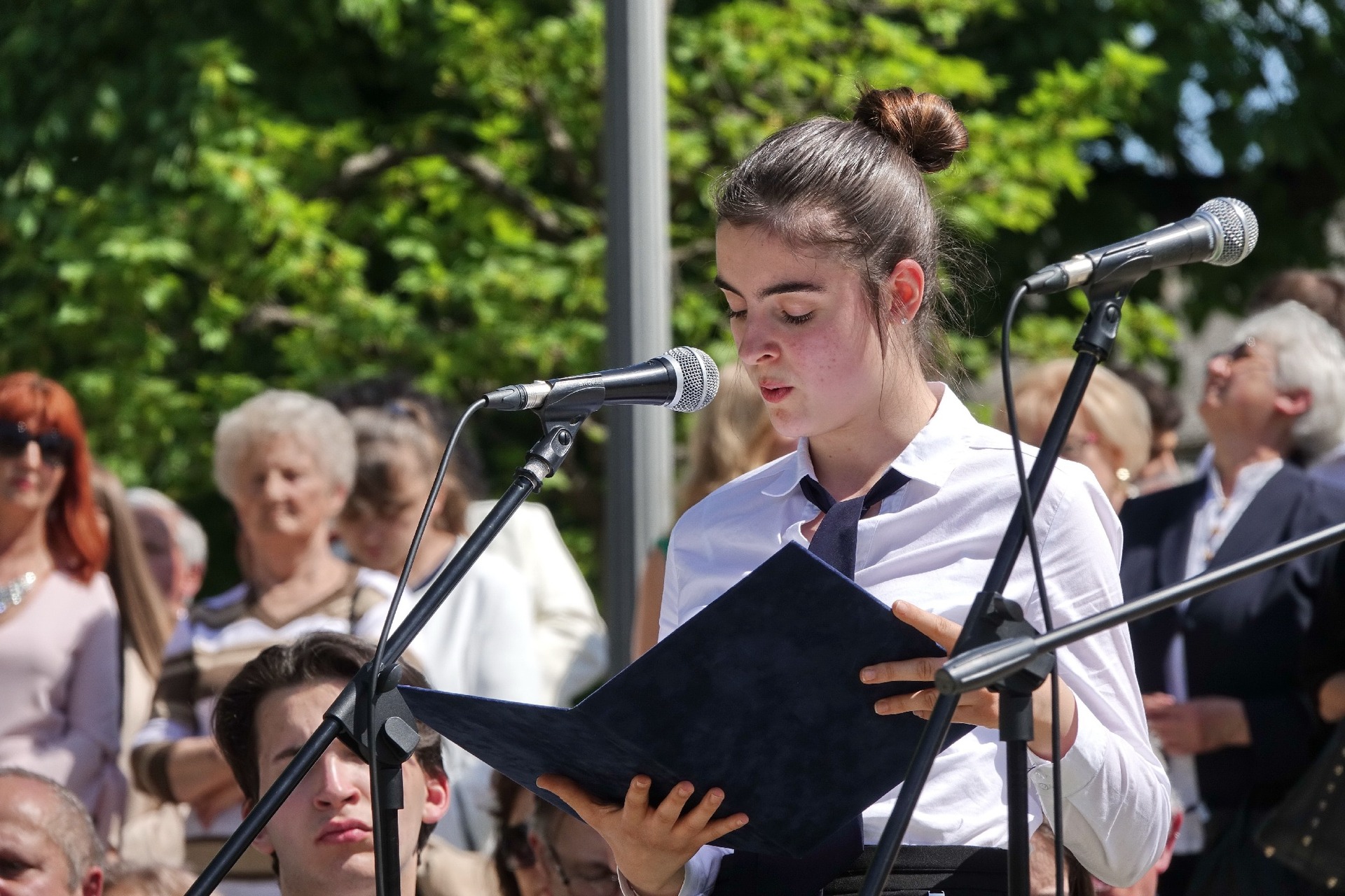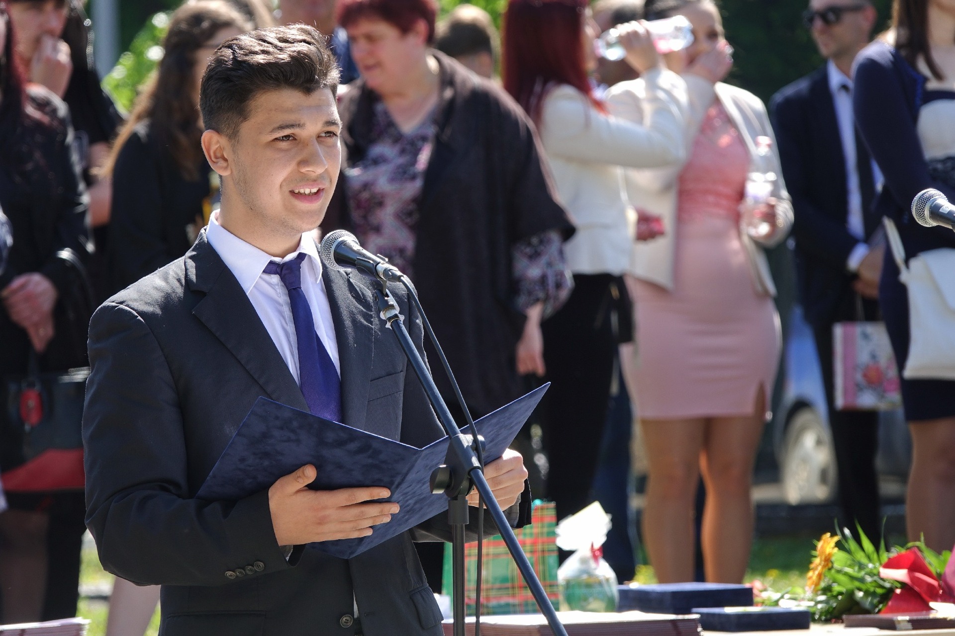A ballagókat és megjelenteket Zámori Ida, az intézmény igazgatója köszöntötte. Mint mondta, az iskola melletti „gödör” a ballagási ünnepség kultikus helyszíne, immár sok évtizede, de ugyanitt szokták igazi erkeles diákká avatni az elsősöket. Kiemelte: a beavatás által minden diák az erkeles közösség tagjává vált, átlényegültek a gimnázium szellemiségével és lelkiségével.