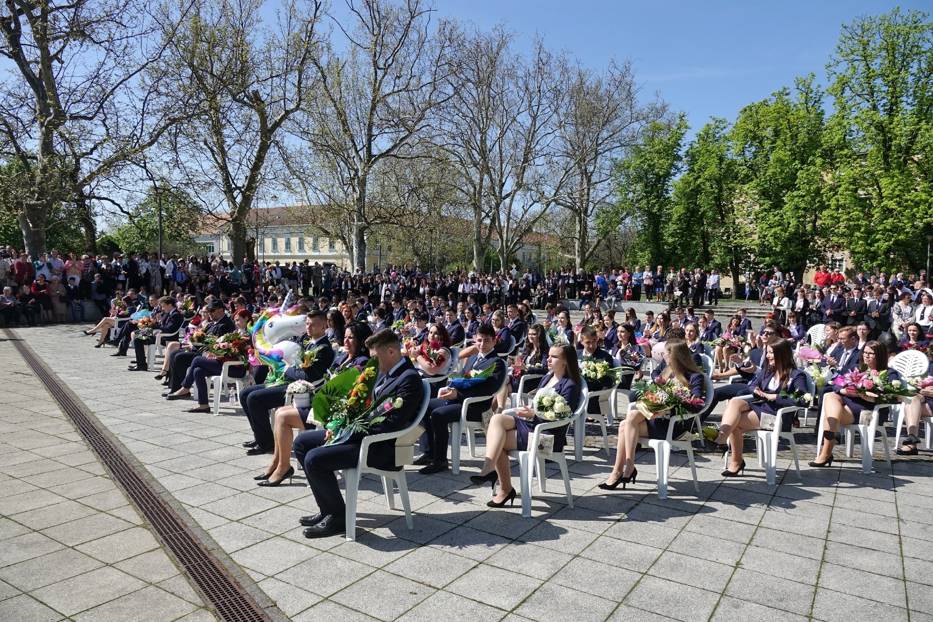 Elballagtak az Erkel Ferenc gimnázium maturandusai április 30-án. Az ünnepség a búcsúzó diákok vonulásával kezdődött, majd a 11.-esek köszöntötték a végzősöket.