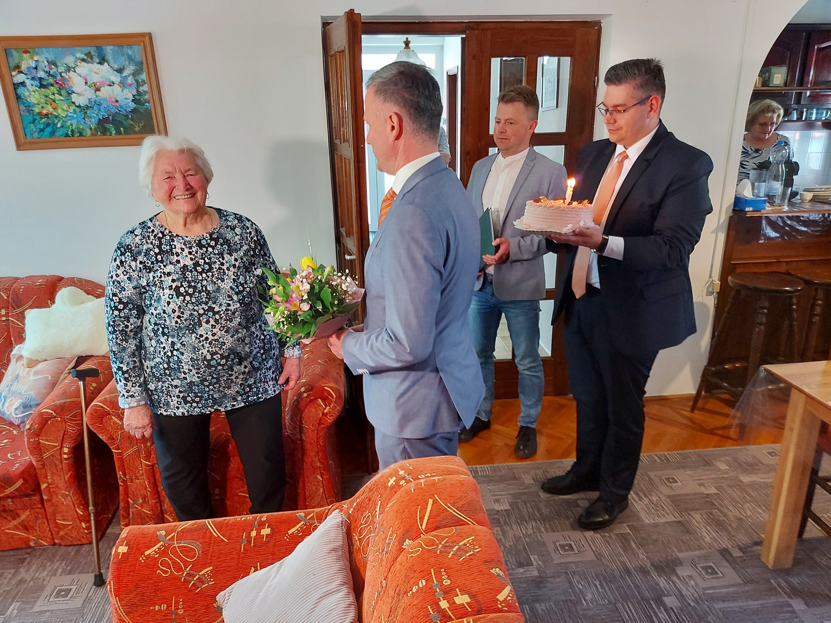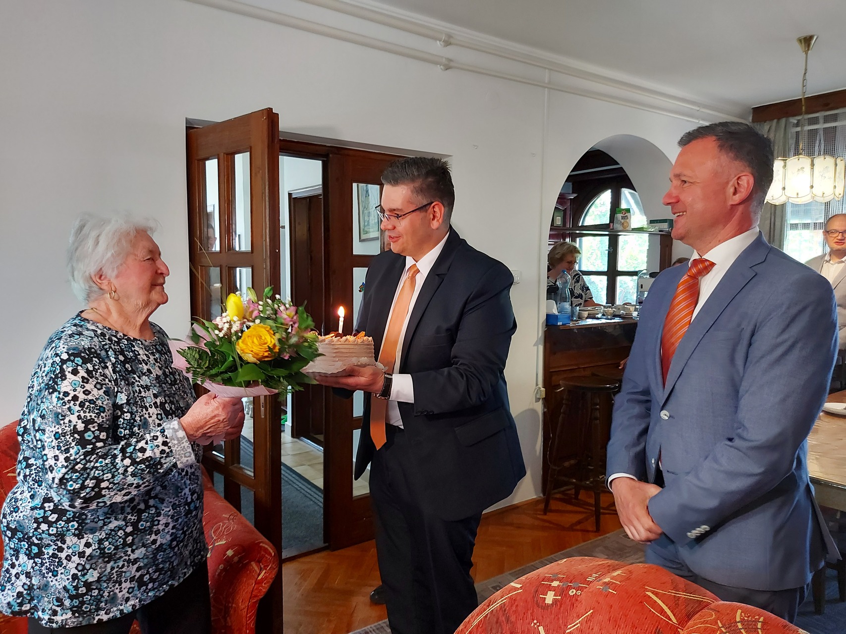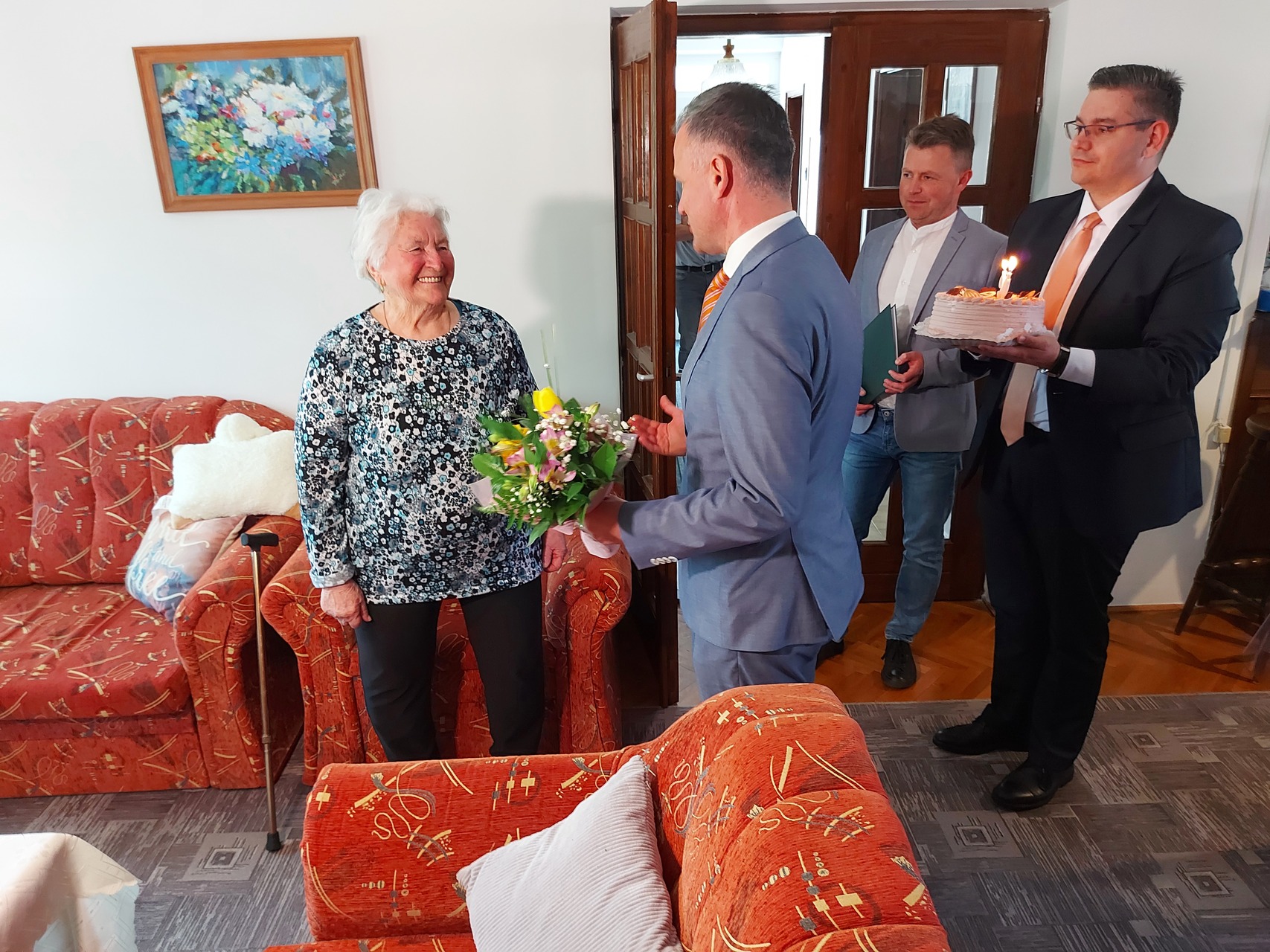 Kilencvenedik születésnapja alkalmából köszöntötte Papp Lajosnét május 5-én Görgényi Ernő polgármester, Alt Norbert önkormányzati képviselő és Csige Gábor jegyző. Az ünnepeltnek virággal, emléklappal és tortával kedveskedtek.