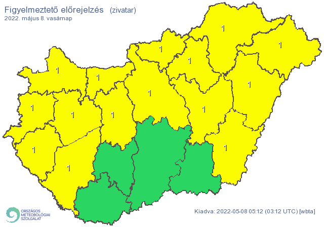 Mint írták, a késő délelőtti óráktól kezdve van esély zivatar kialakulására, először a Dunántúli- és Északi-középhegységben, majd a Dunántúl északi felében, valamint az alföldi területeken. A zivatarokat intenzív csapadékképződés (erősebb gócokban ~ 20 mm) erős, akár viharos széllökések (50-65 km/h), valamint apró szemű jég is kísérheti.