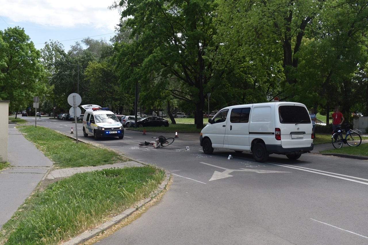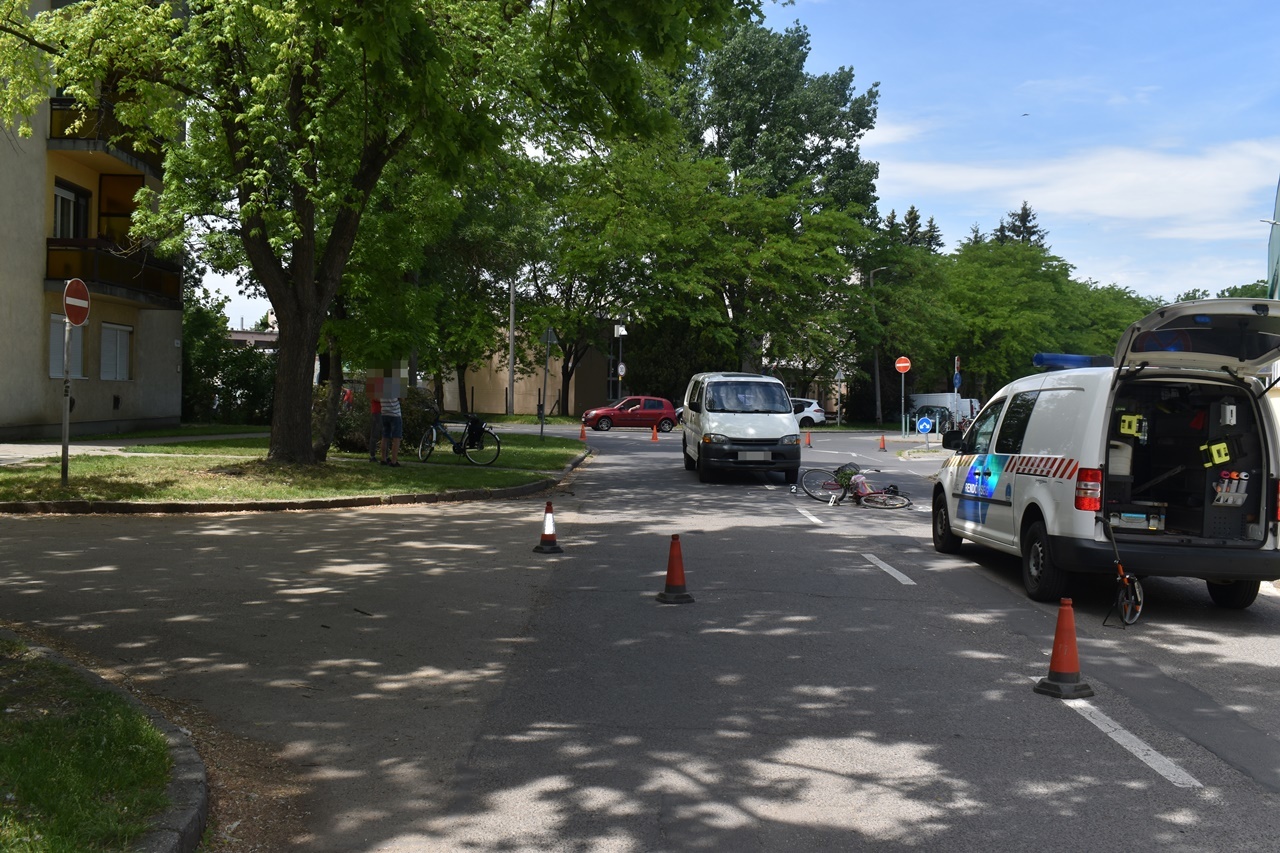 Békéscsabán, május 21-én 11 óra körül egy kisteherautó vezetője az Őr utcáról jobbra kis ívben kanyarodott ki a Trefort utcára, amikor szabálytalanul az úttestre lépett egy kerékpárját toló gyalogos. A férfi intenzíven fékezett, de már nem tudott megállni, elütötte a nőt. A 79 éves asszony elesett és az elsődleges vizsgálatok eredménye alapján könnyű sérülést szenvedett. A Békéscsabai Rendőrkapitányság vizsgálja a baleset körülményeit.