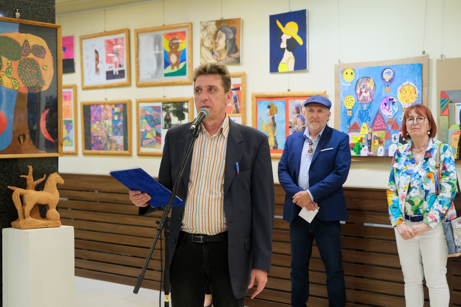 A kiállítást Bende Róbert művésztanár nyitotta meg, aki elmondta: a koronavírus-járvány idején nehéz volt online oktatni a gyermekeket.