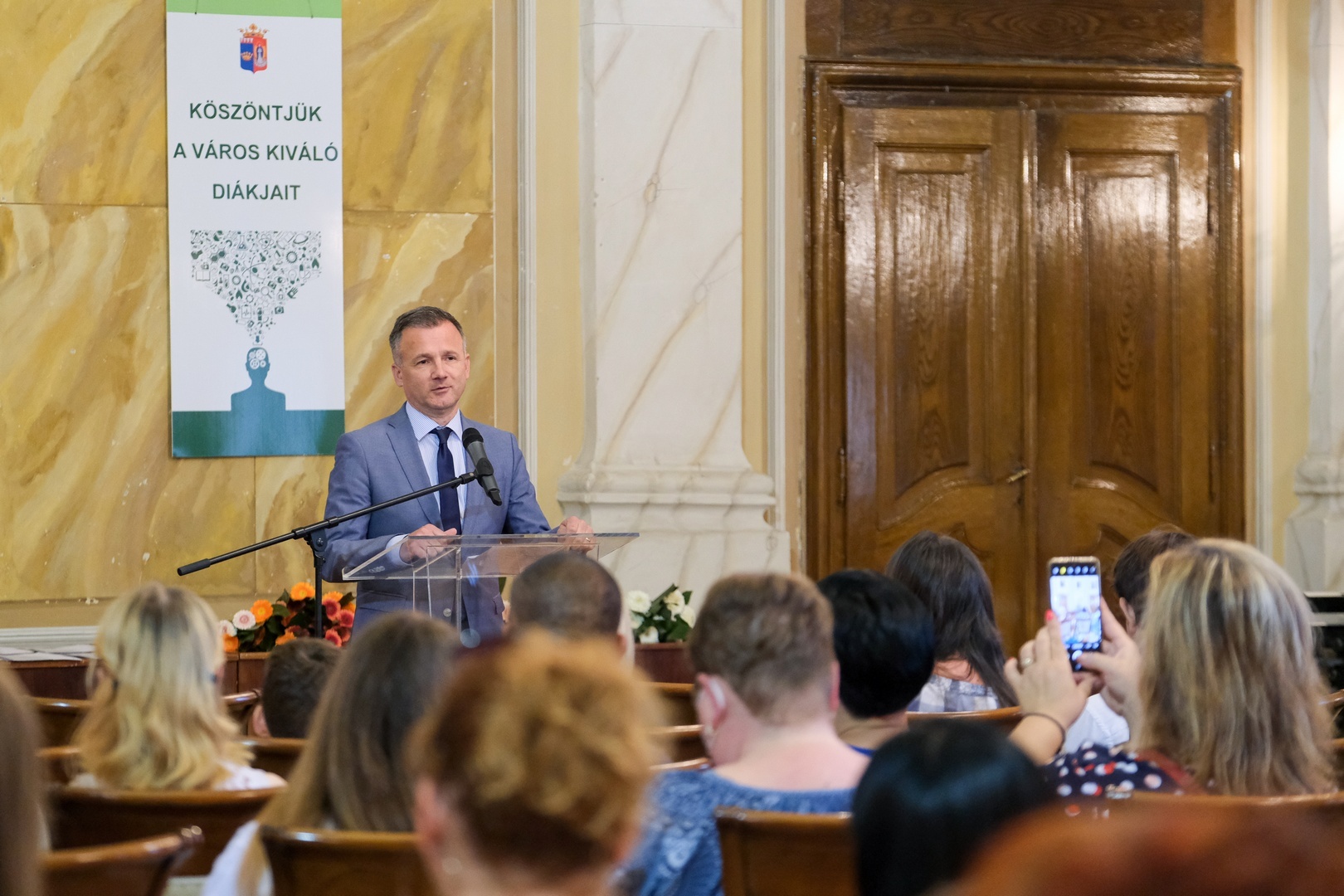 – Kedves diákok, ti már tapasztalatból tudjátok, hogy a versengés pozitív és hasznos dolog. A versenyzés lehetőséget nyújt arra, hogy a legjobbat hozzuk ki magunkból. Az önmagunkkal való közdelem erős motiváló erő, de a versenyzés másokkal még ennél is erősebb motivációt ad – mondta a városvezető, hozzátéve, hogy első lépésben önmagunkat kell legyőznünk egy versenyre való felkészülés során.