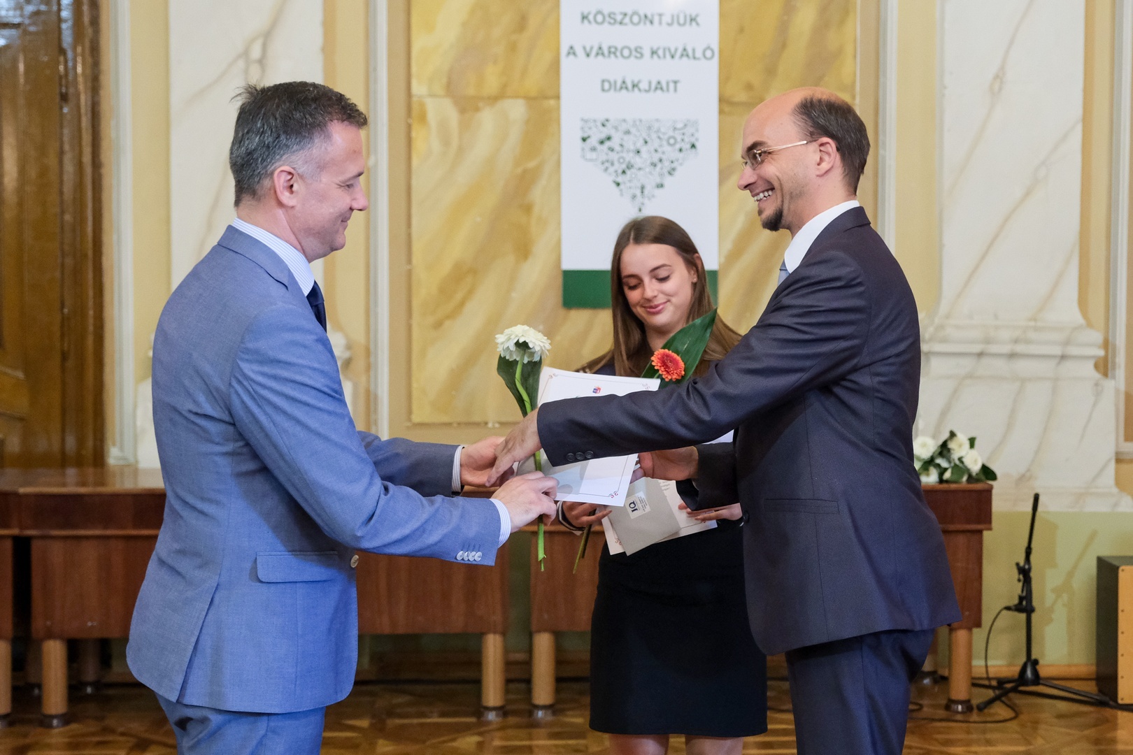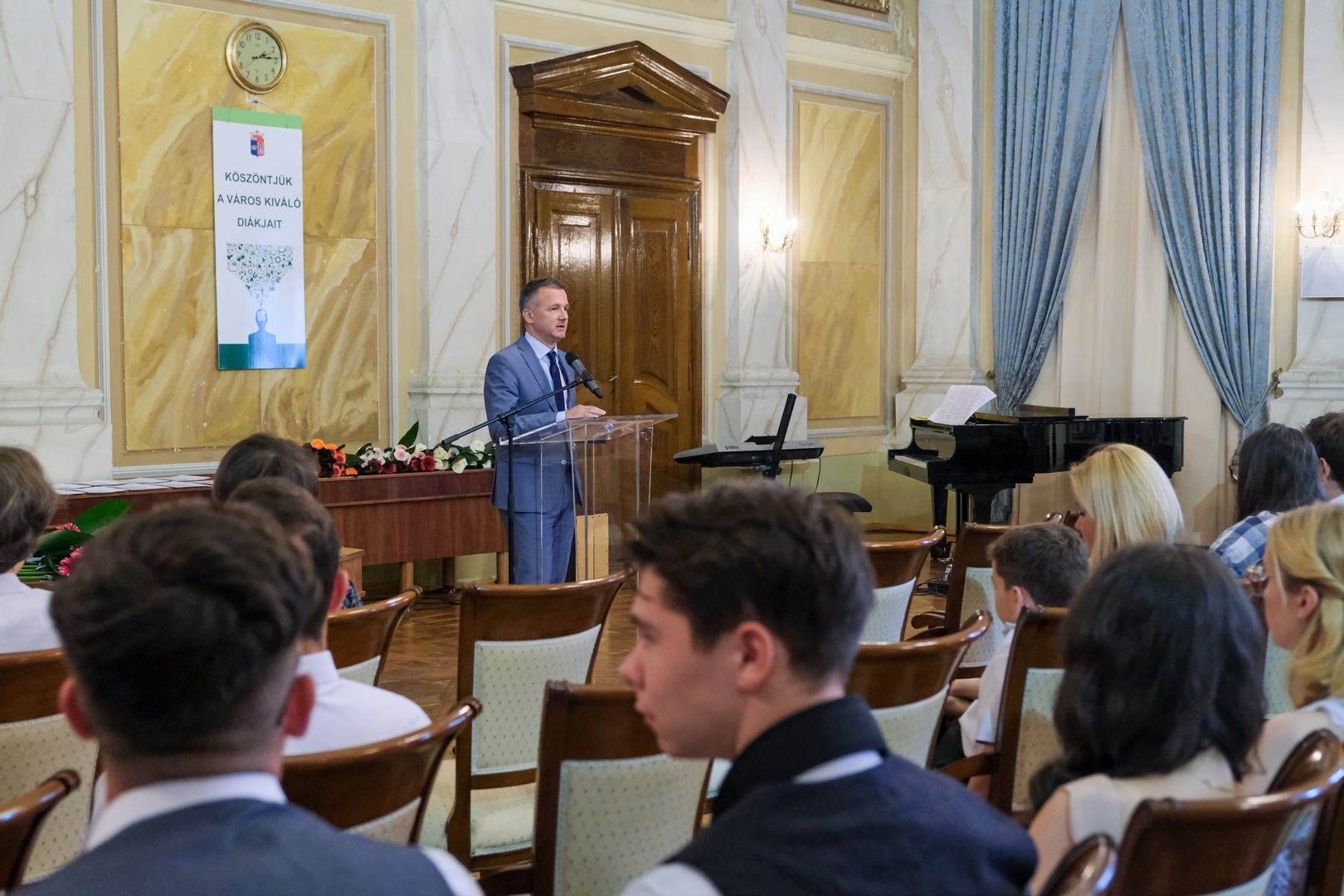 A megjelenteket Görgényi Ernő polgármester köszöntötte, aki gratulált a gyulai diákoknak. Kiemelte, hogy a diákok mellett a tanároknak és a szülőknek is jár a köszönet.