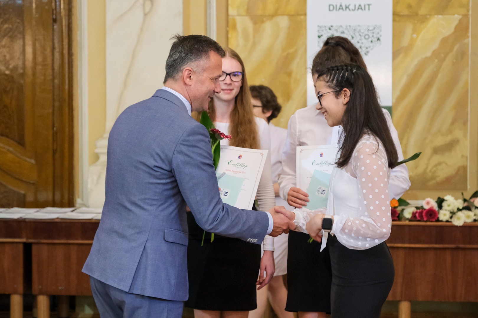 – Ti remek eredményeket értetek el a tanulmányi versenyeken és az iskolában. Olyan világban nőttök fel, amelynek alapeleme a versengés, ebben a világban kell megállnotok a helyeteket, kibontakoztatnotok a tehetségeteket – folytatta Görgényi Ernő. Kiemelte: a versenyhelyzetben az ember erősségeit és gyengeségeit is megismerheti.