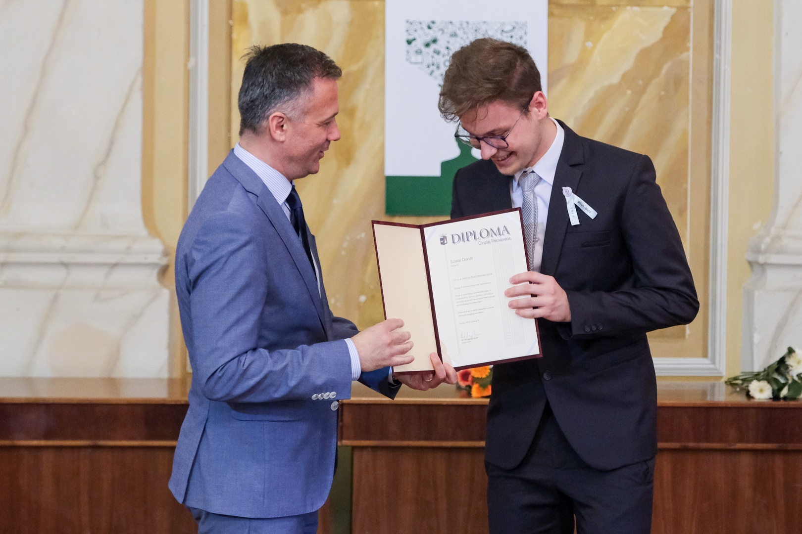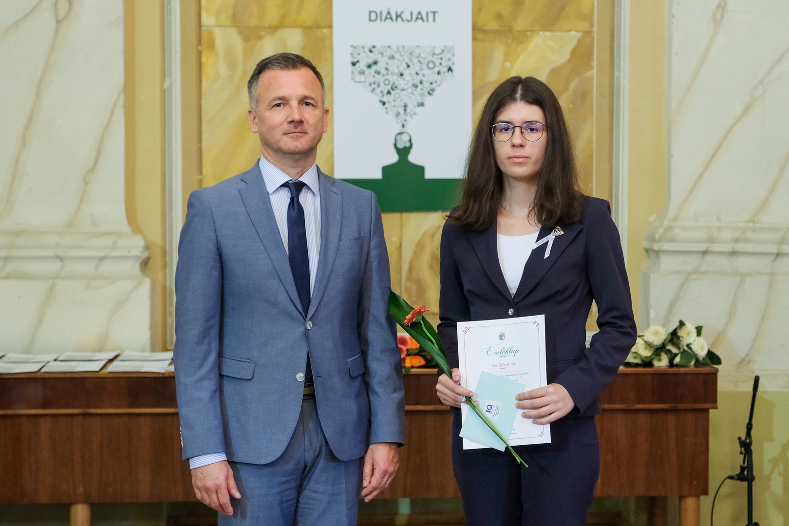 A folytatásban az elismeréseket adtak át. A legkiválóbb tanulónak járó Gyulai Primissima díjat idén Szalai Donát, a Karácsonyi János katolikus gimnázium diákja érdemelte ki. A tanuló tizenkét éve a katolikus intézmény diákja, tanulmányait minden évben példamutató magatartással, kimagasló szorgalommal, kitűnő tanulmányi eredménnyel és számos tantárgyi dicsérettel végezte, sokat munkálkodott az osztály közösségi életében és az iskolai diákönkormányzatban is. Számos országos versenyen ért el szép eredményt matematika, kémia és biológia tantárgyakból, ezzel öregbítve iskolája hírnevét.