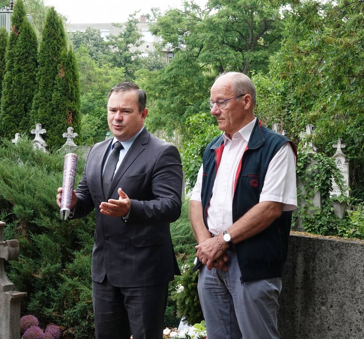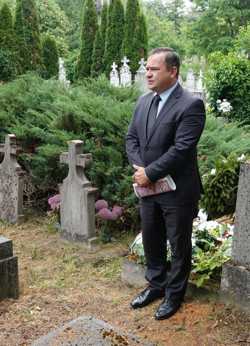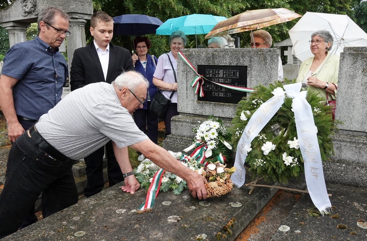 Koszorúzást tartottak a szecesszió világnapja alkalmából az irányzat gyulai képviselőjének, Pfaff Ferenc építőmesternek a sírjánál június 9-én a Szent József temetőben.