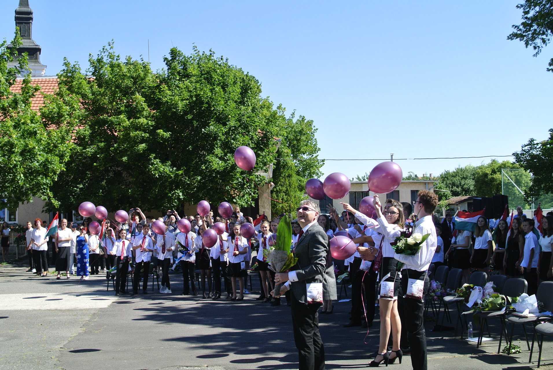 A ballagás a már hagyományosnak számító zászlóátadással kezdődött, majd az ünnepi műsor után a végzősök elengedték az útrakelést szimbolizáló léggömböket.